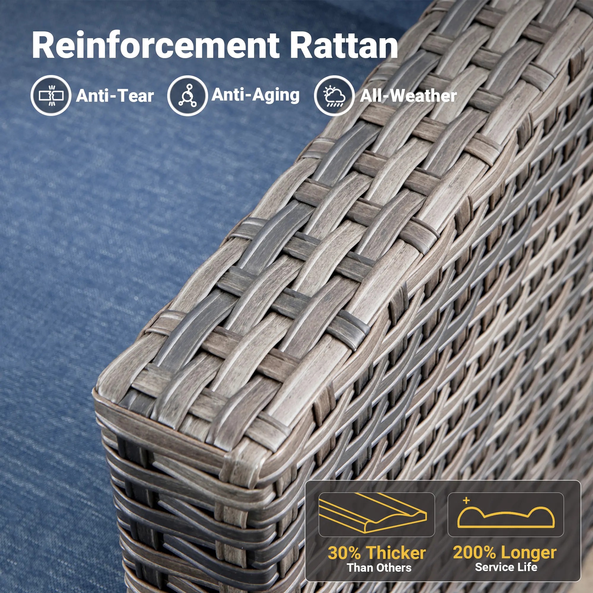 Immerse in sturdiness with handwoven wicker, paired with high-density cushions providing robust lumbar support. It's the perfect blend of strength and comfort.