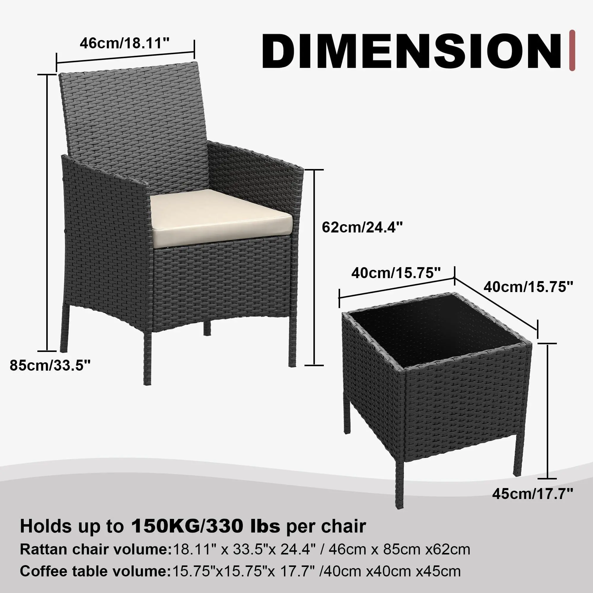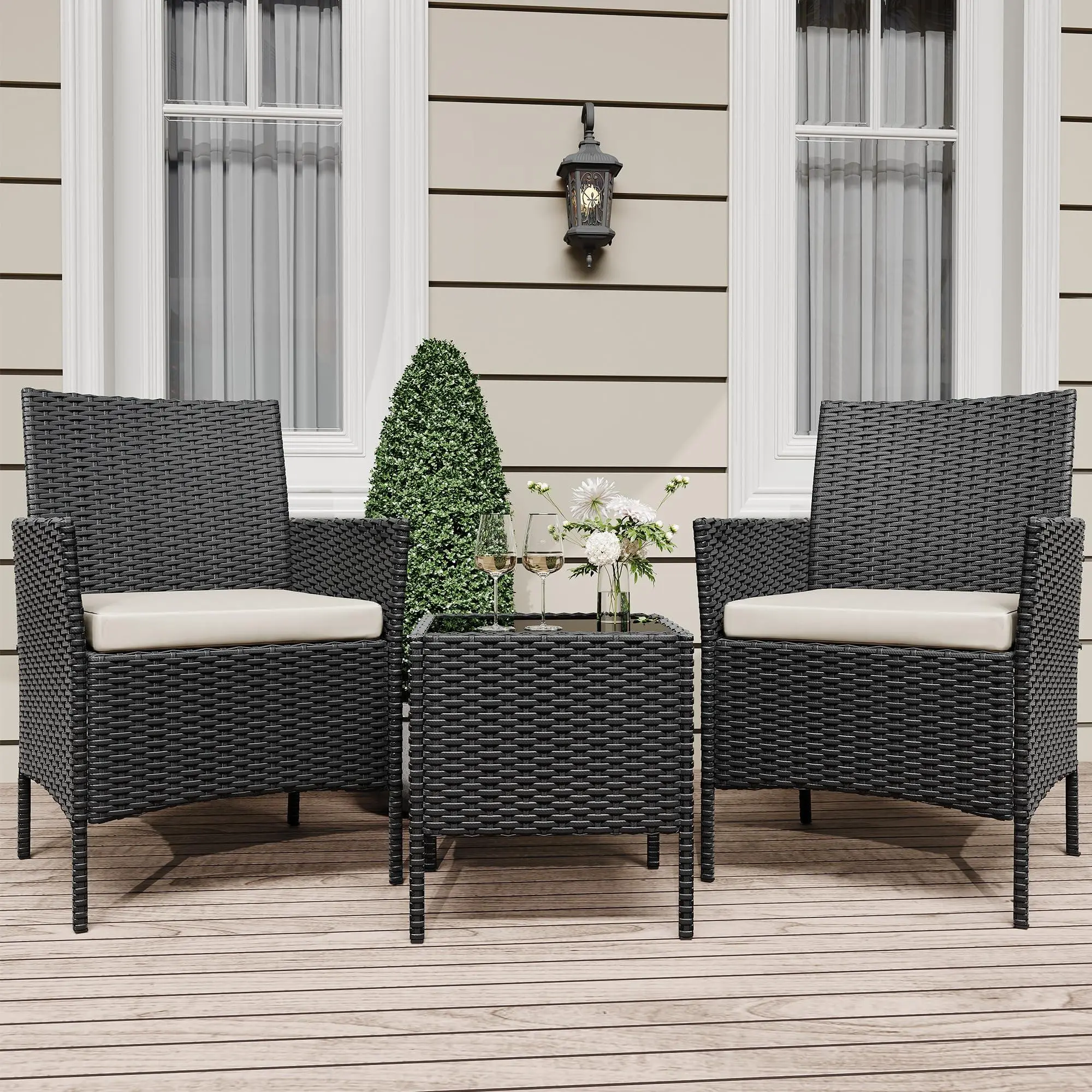 【All-Weather Durability】Built to last, our outdoor patio furniture set crafted with UV-resistant PE rattan and rust-resistant powder-coated iron frames, this 3-piece patio set is built to withstand harsh weather conditions, ensuring long-lasting outdoor enjoyment.