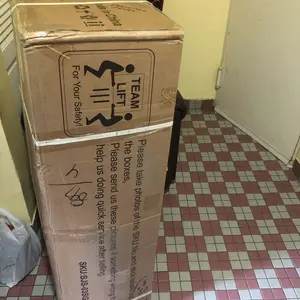 The box arrived a bit damaged, but it all turned out to be ok, nothing was damaged or missing. It looks awesome on my new porch and I didn’t waste any time before using it. Material seems good, hopefully it lasts and holds up goo