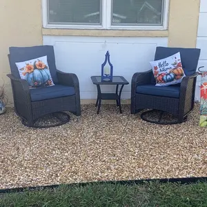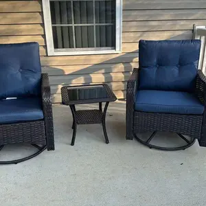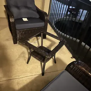 Arrived quickly, easy to assemble, and was very pleased with the product I am thinking of getting another set for my front patio area. Wonderful purchase, watched the lives for awhile before I purchased and read reviews because well, sometimes you never know what you are getting. I was pleased.