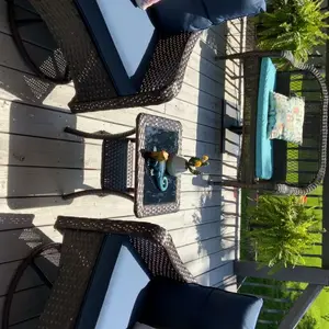 The set looks amazing and good quality. The cushions are comfortable. The bottom requires a little better instruction but we got it done in 3 hours for the set up at our own pace.