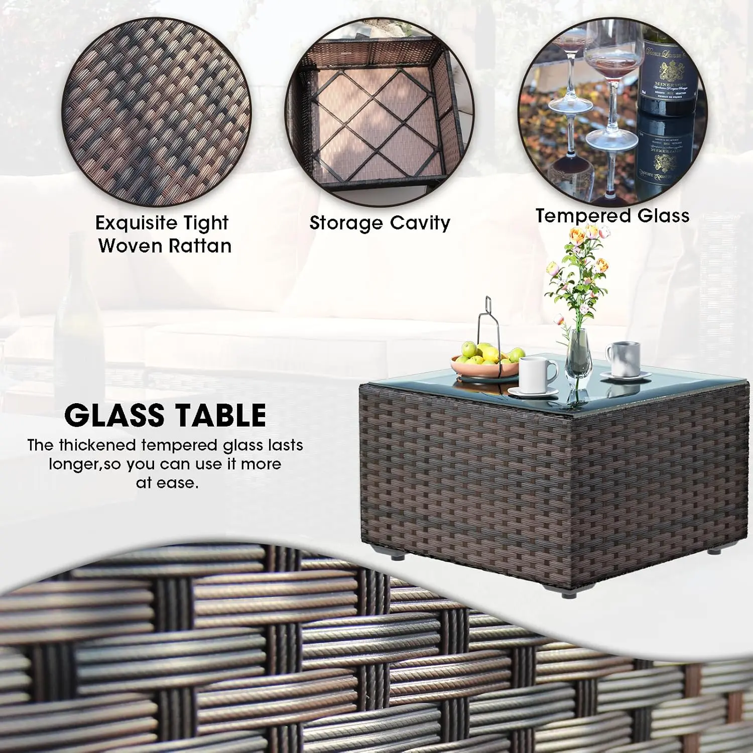 ·UPGRADED SOFA SET: Our patio conversation set includes extra-thick 4 inch cushions with removable covers that are easy to clean. Filled with a premium sponge to stay fluffy and non-deformation, ensuring that you won't get tired while sedentary.
