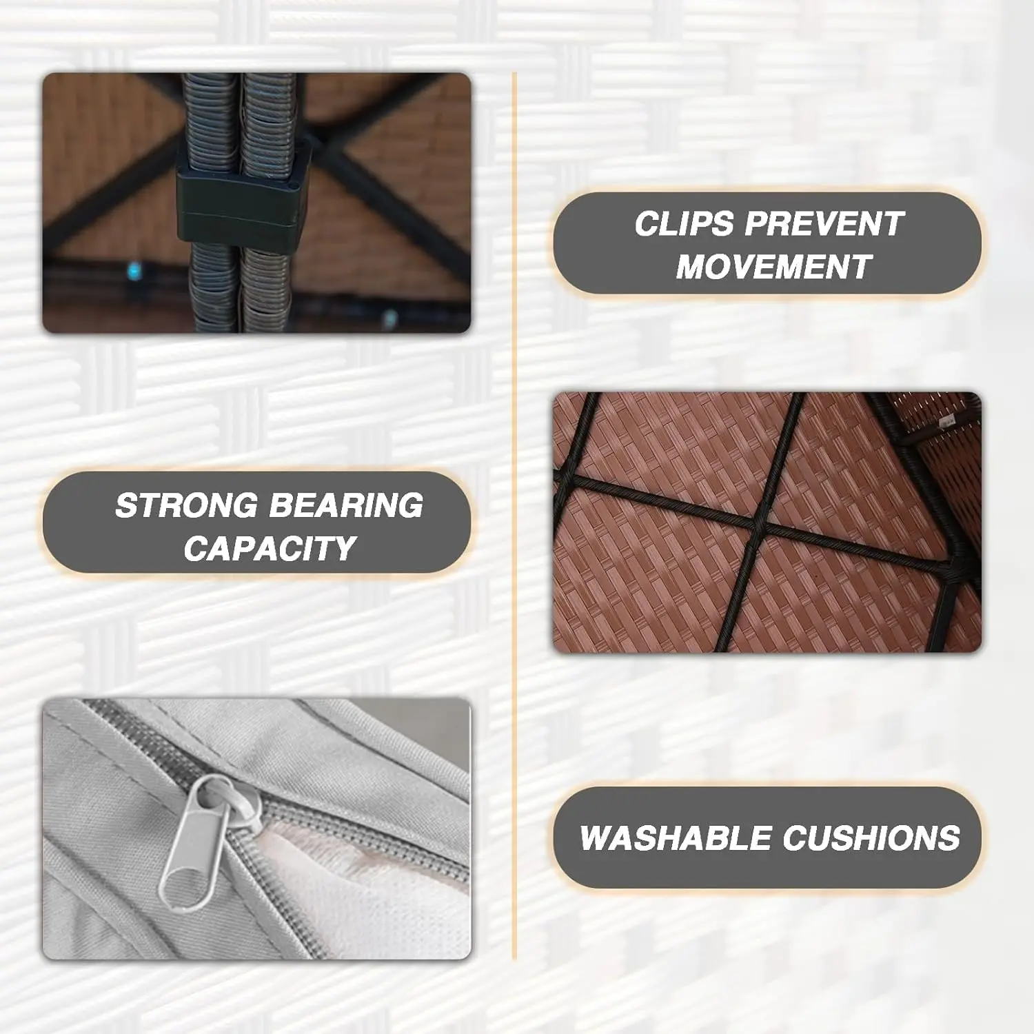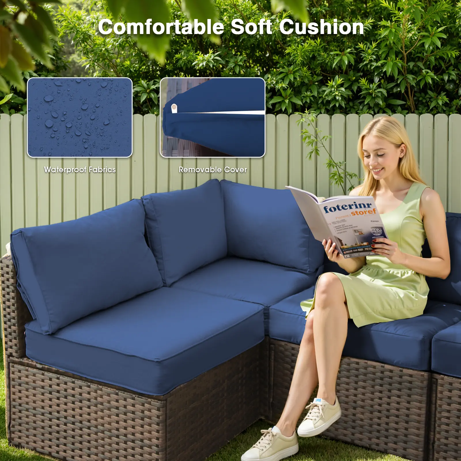 ·UPGRADED SOFA SET: Our patio sofa set includes extra-thick 4 inch cushions with removable covers that are easy to clean. Filled with a premium sponge to stay fluffy and non-deformation, ensuring that you won't get tired while sedentary.