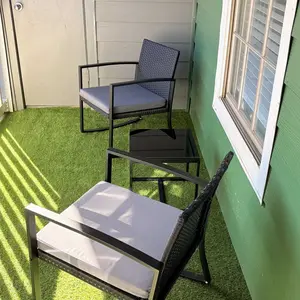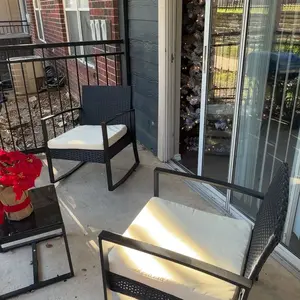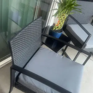 Compré este set para mi balcón y estoy obsesionada 😍🖤 Súper moderno, minimalista y se ve mucho más caro de lo que fue. Las sillas son cómodas, el cojín es firme pero comfy, y la mesita con vidrio le da ese toque elegante. 10/10 para cafecito en la mañana o chismecito en la tarde ☕✨”