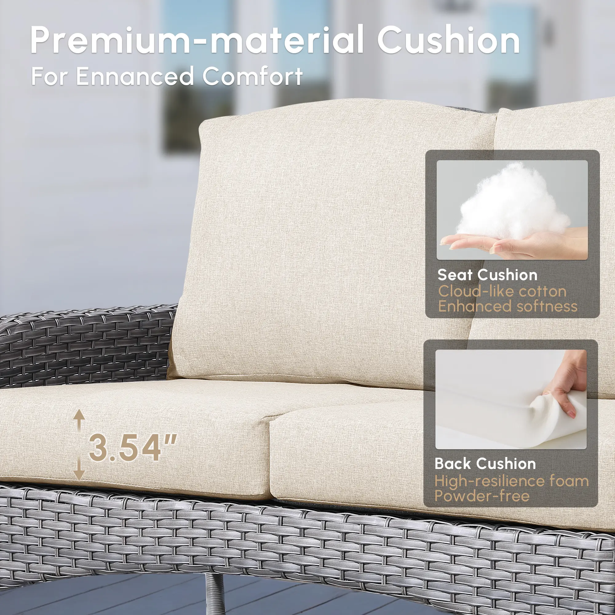 Sturdy & Practical:Indulge in a cozy yet modern experience with spacious armrests and deep seats. Long-lasting wicker guarantees durability, erasing worries of wear over time.