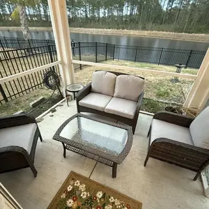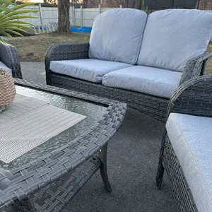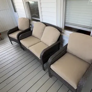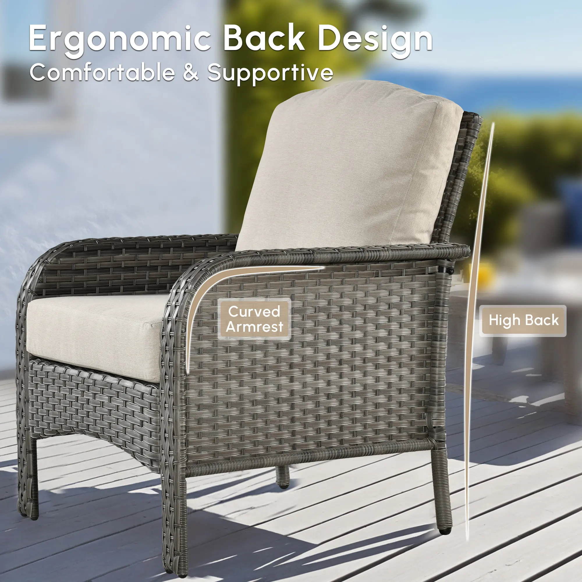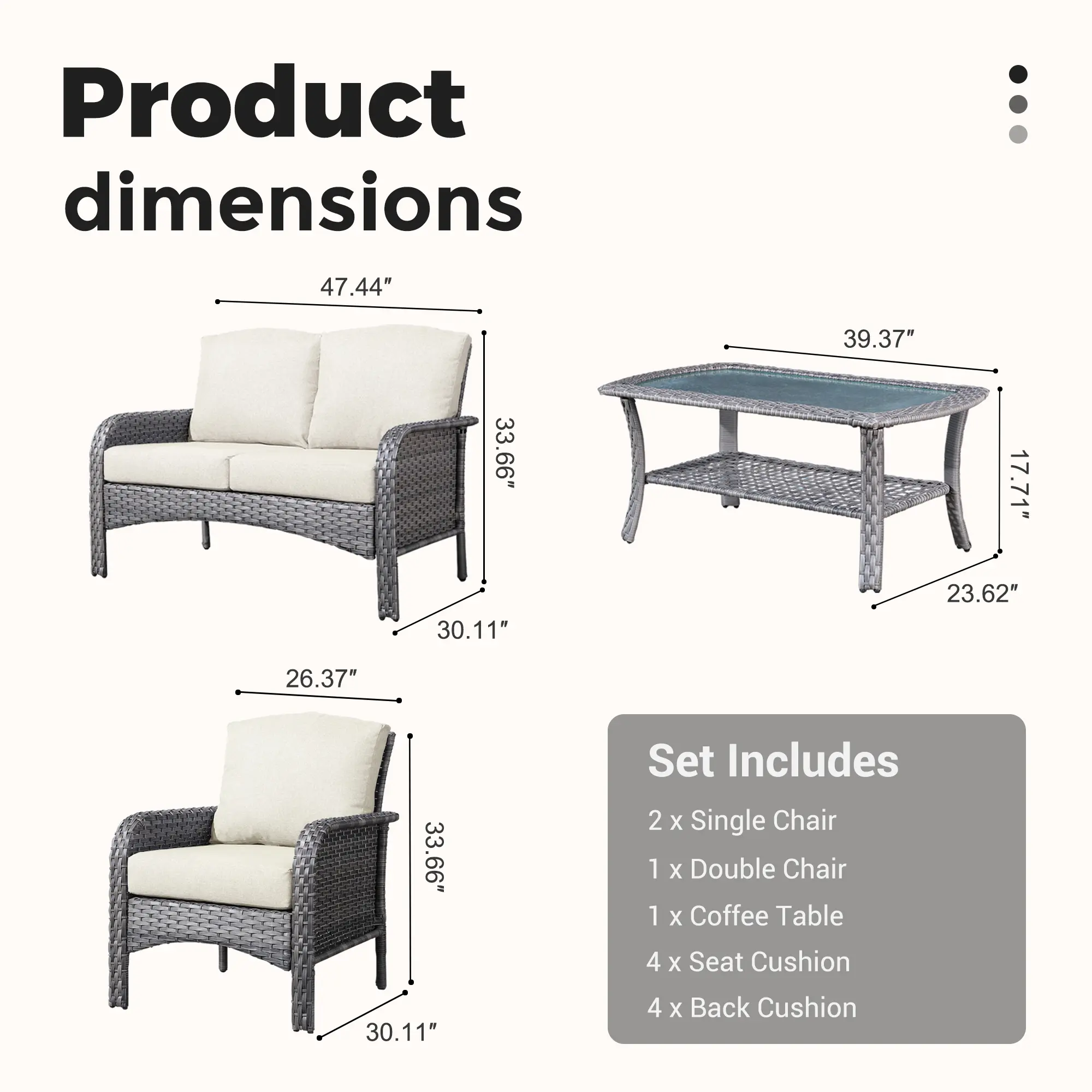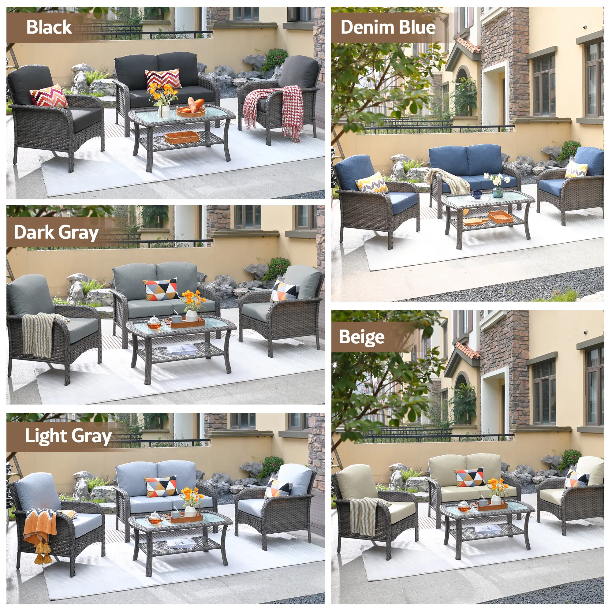 Elevate your patio space with the Ovios Patio Furniture Set, now available in August 2021. This set includes 4 pieces of high-back all-weather PE wicker furniture, designed to provide both style and functionality.
