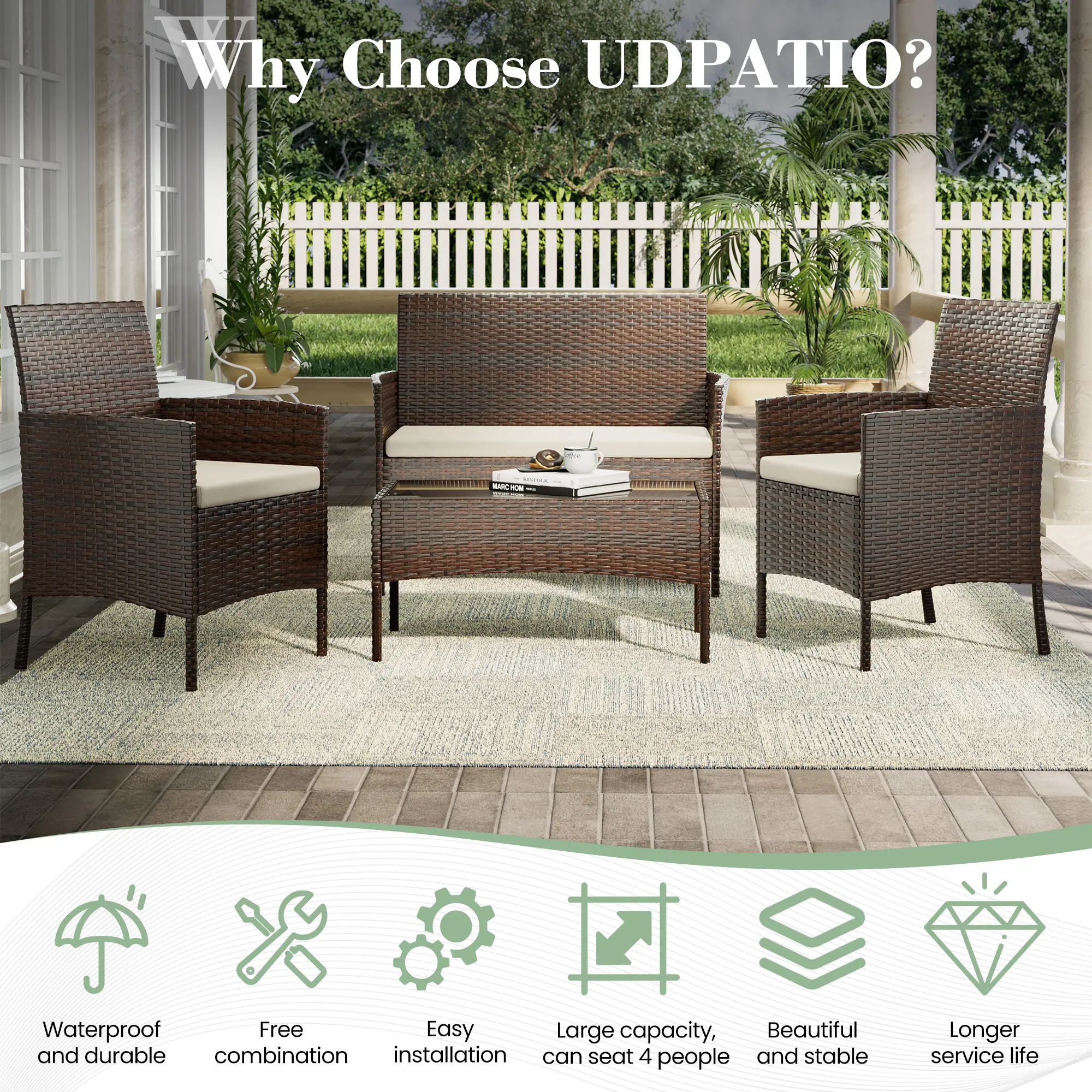 🌿 UDPATIO Ergonomic Rattan Patio Furniture Set