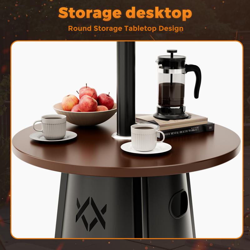 ·Stylish & Practical Patio Heater – Elevate your outdoor experience with this top-tier propane heater, complete with a sturdy round tabletop to hold drinks, snacks, phones, and more. The magnetic-lock door makes propane tank access quick and secure. Perfect for laid-back outdoor gatherings.