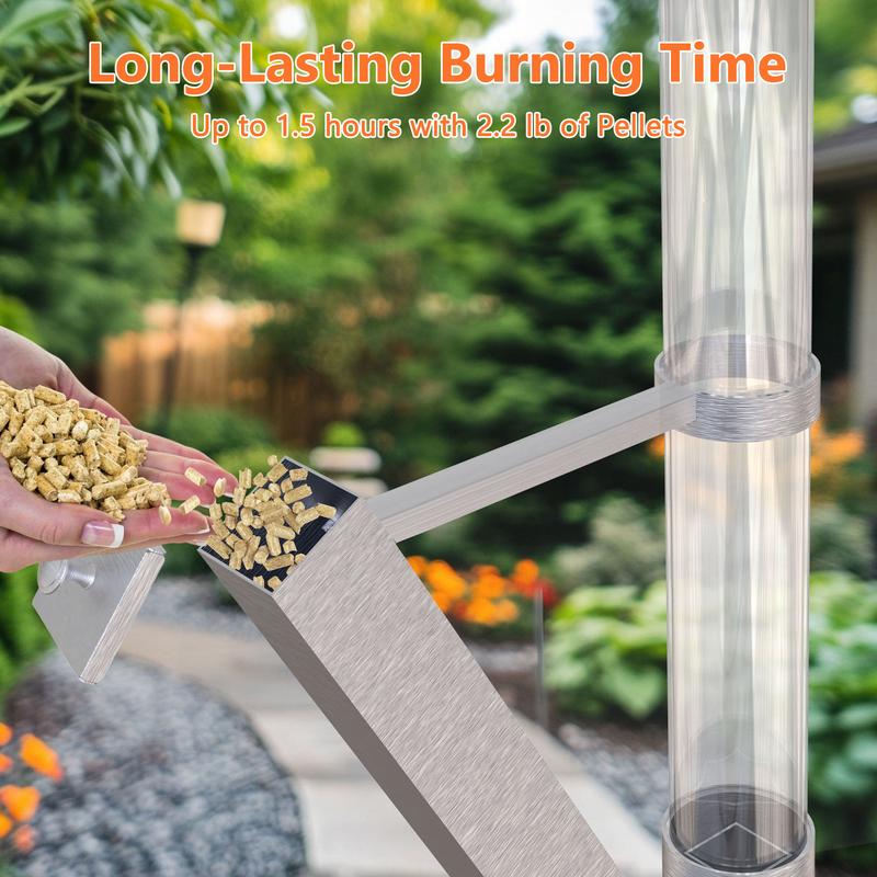 Load once and relax. The 2.2 lb fuel chamber offers long-lasting warmth with minimal refueling, making it ideal for gatherings, parties, or chilly nights outside.