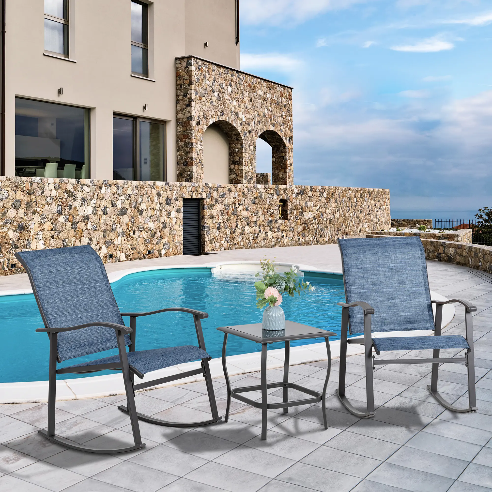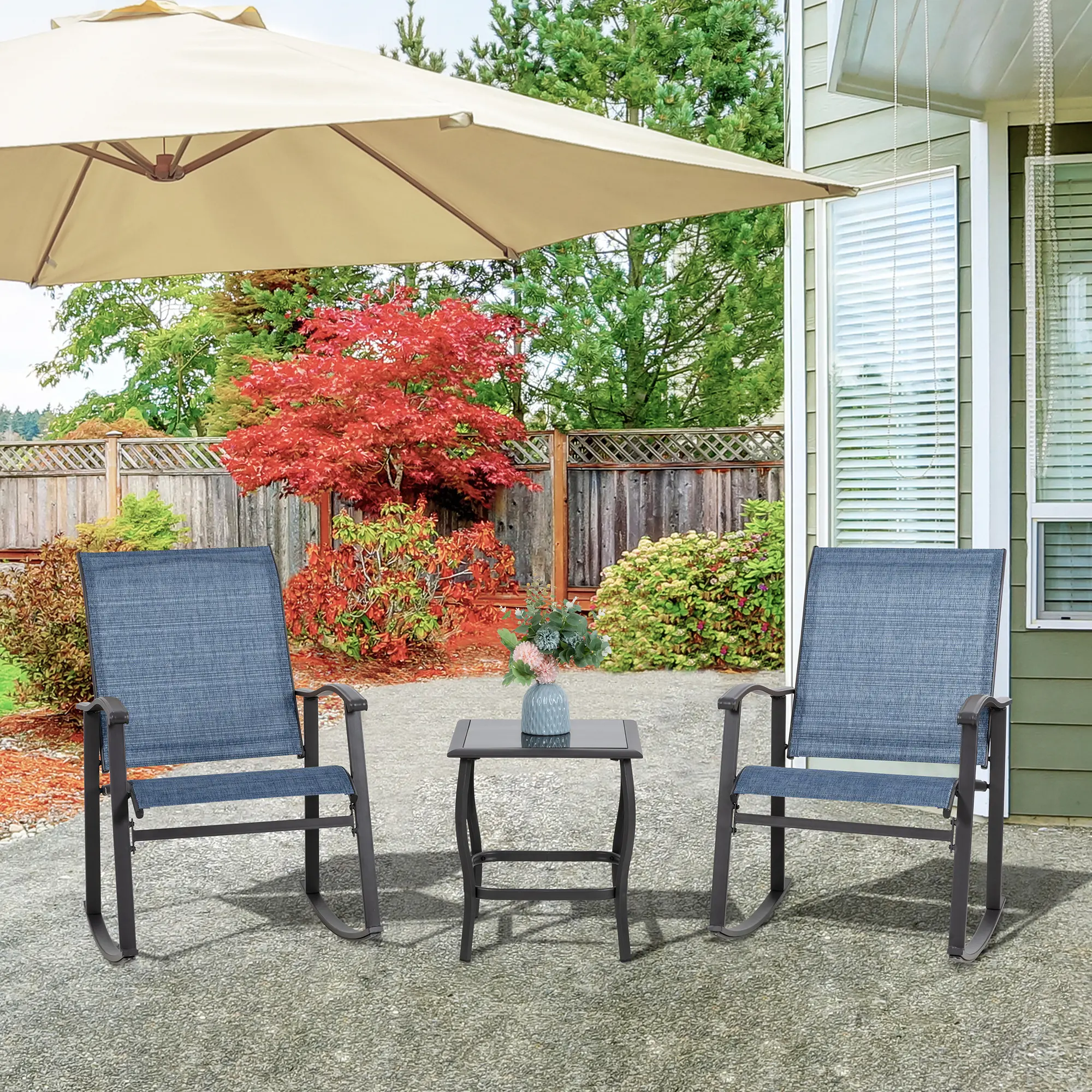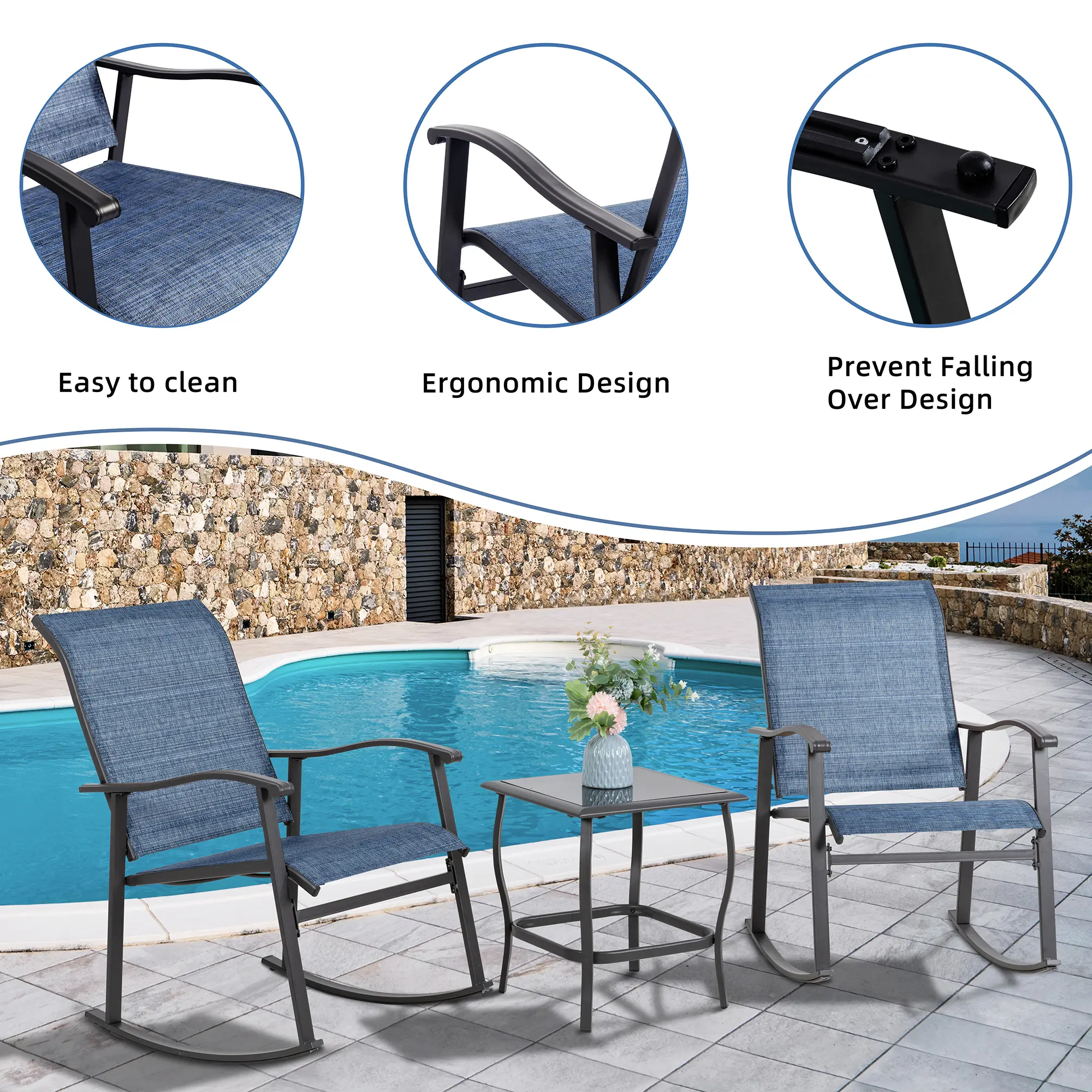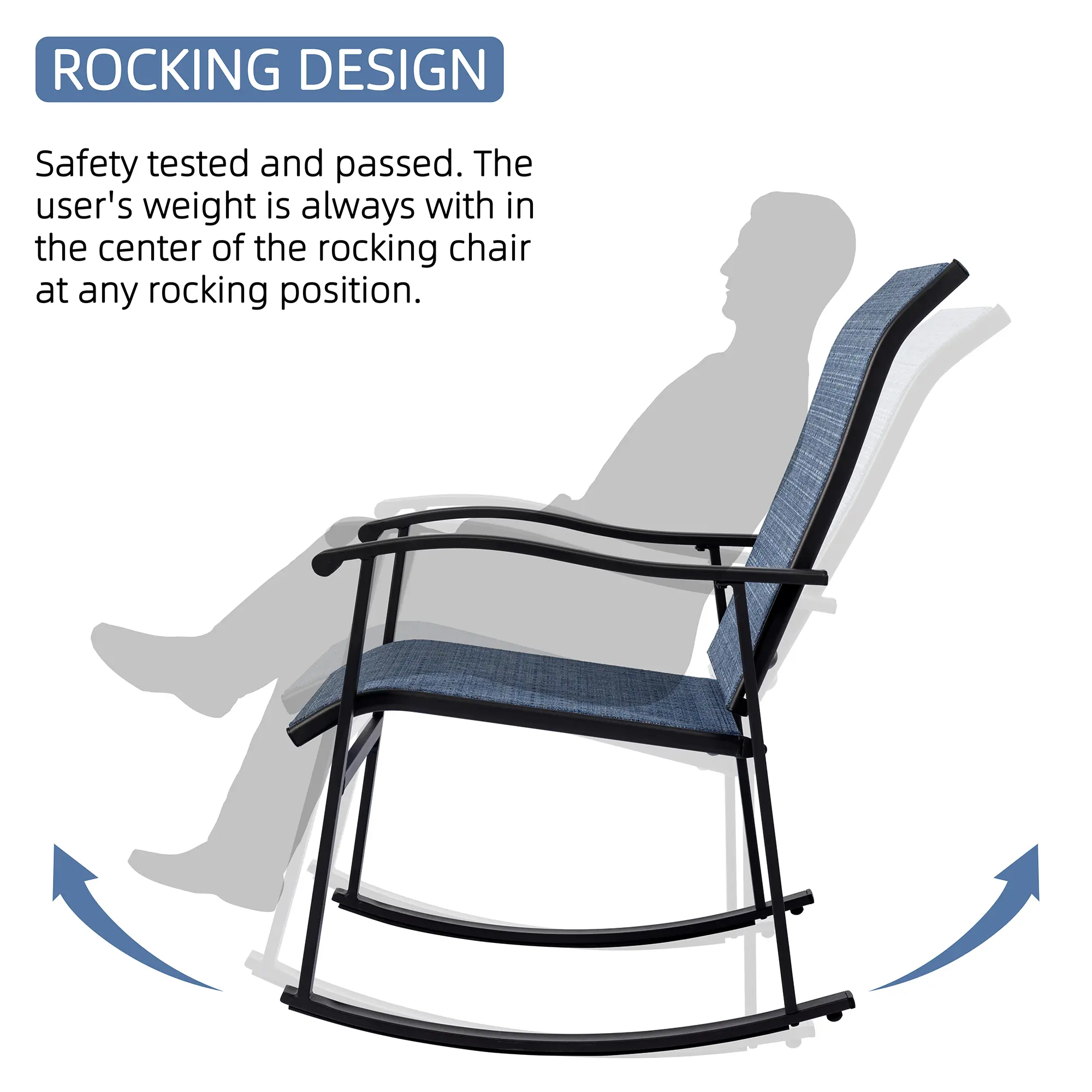 Notes: Not recommended for use in rainy days. Please store the rocking chair set indoors during rain to prevent rusting.