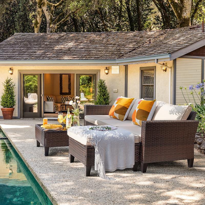 5. HOMALL 5 Pieces Outdoor Patio Furniture Sofa Set Wicker Rattan Sectional Sofa Sets with Ottoman