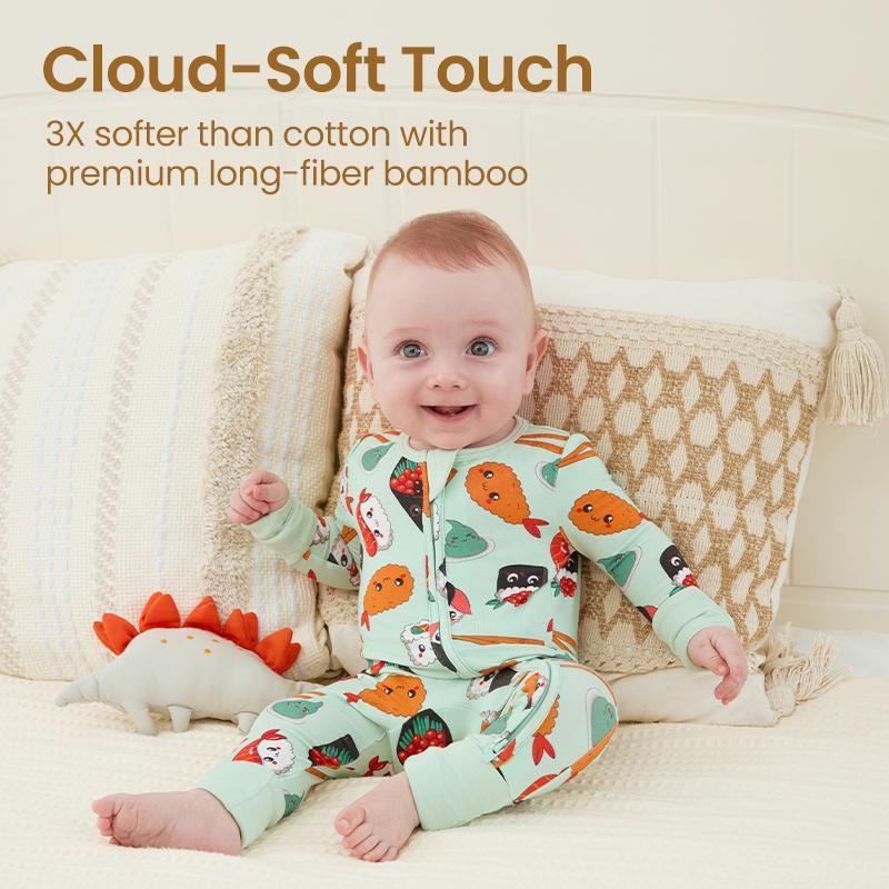8% Spandex Magic – Buttery-soft fabric stretches 3X longer than regular pajamas, moving with your baby’s growth.