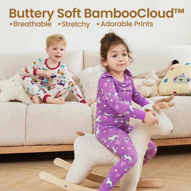 PATPAT Bamboo Viscose Pajama Sets for Toddler Boys & Girls Baby Kids, Ultra-soft Snug fit Pjs Sleepers for Birthday Holiday