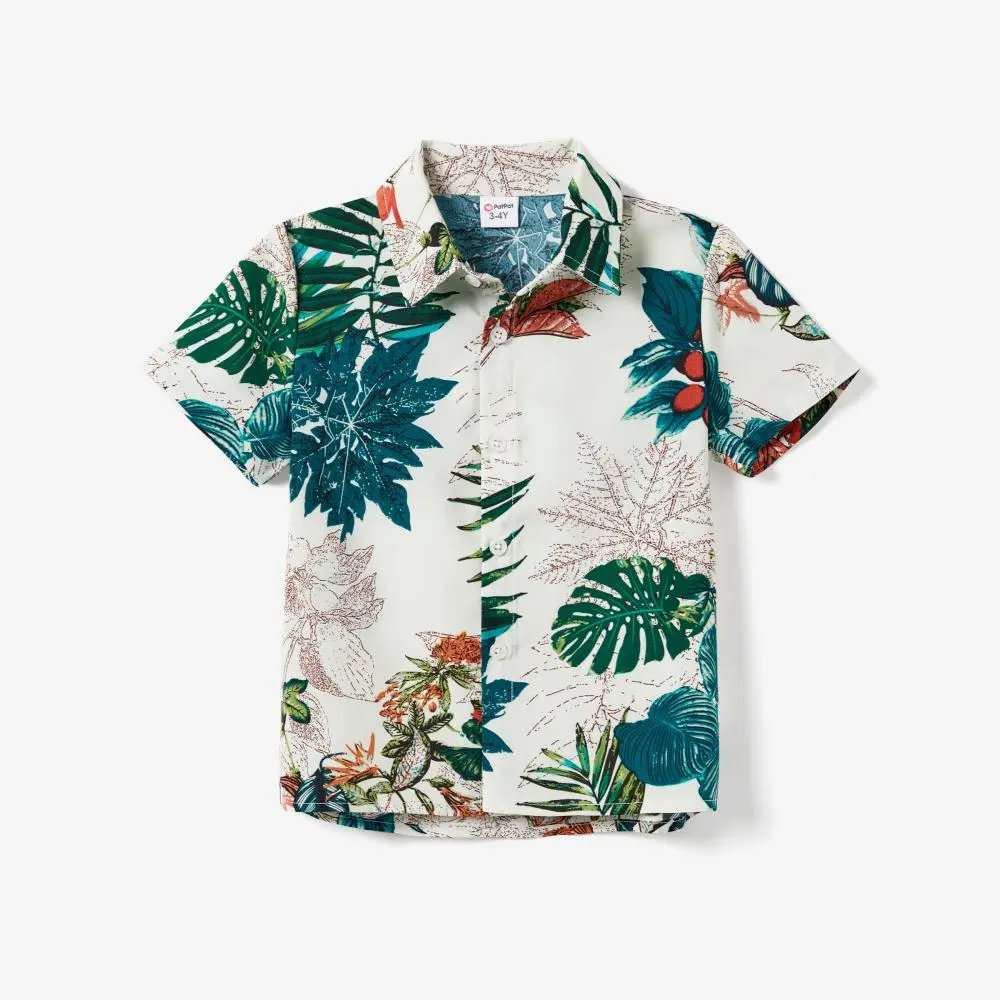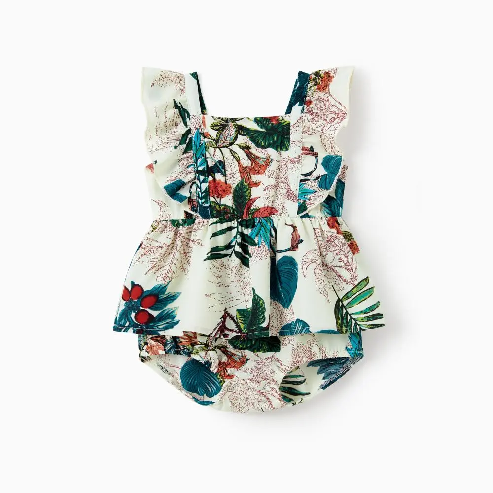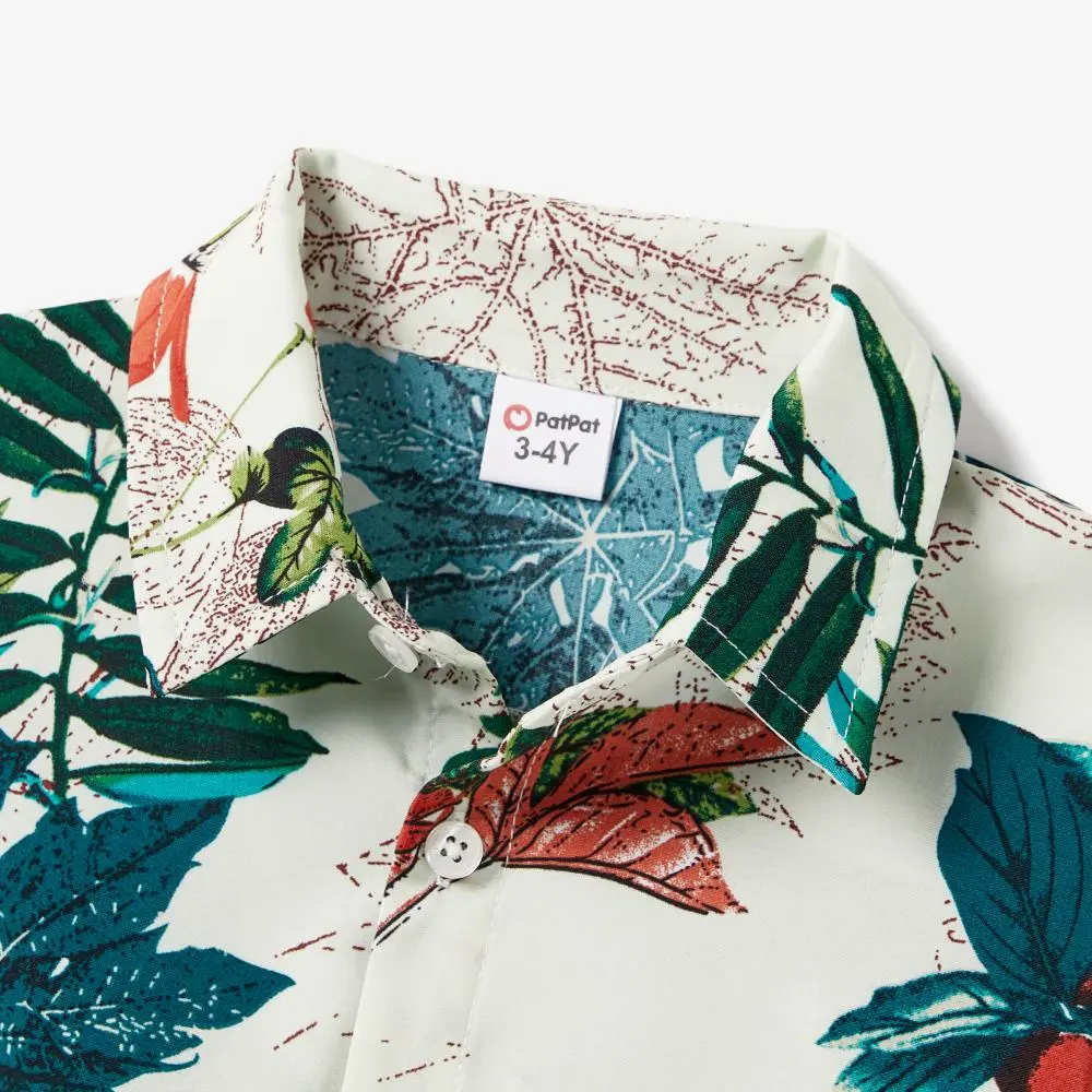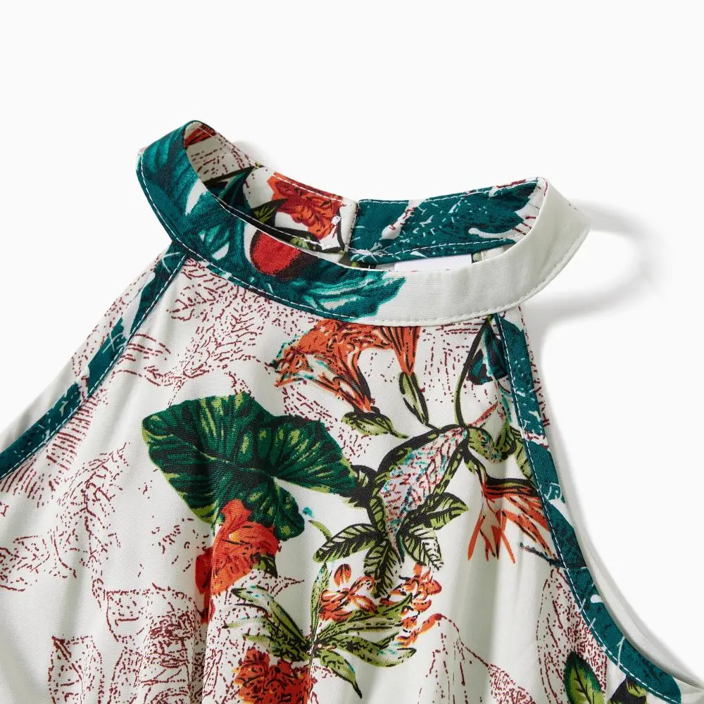 ·PatPat 1 PCS Family Matching Allover Plant Floral Print Sleeveless Halter Dress For Mom/Girl, Short-sleeve Shirt For Dad/Boy, or Sleeveless Floral Romper For Baby