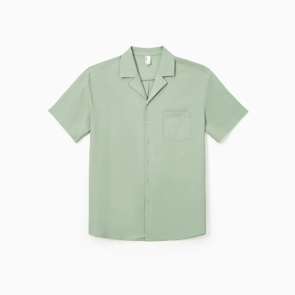 PatPat Family Matching Leaf Print Green Short-sleeve Shirt or Sling Shirred Dress Set