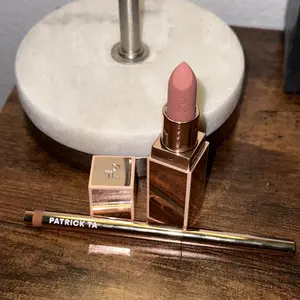 Apply lipstick, starting at the center of your lips and moving outward. For the most precise application, apply with your Patrick Ta Lip Brush.