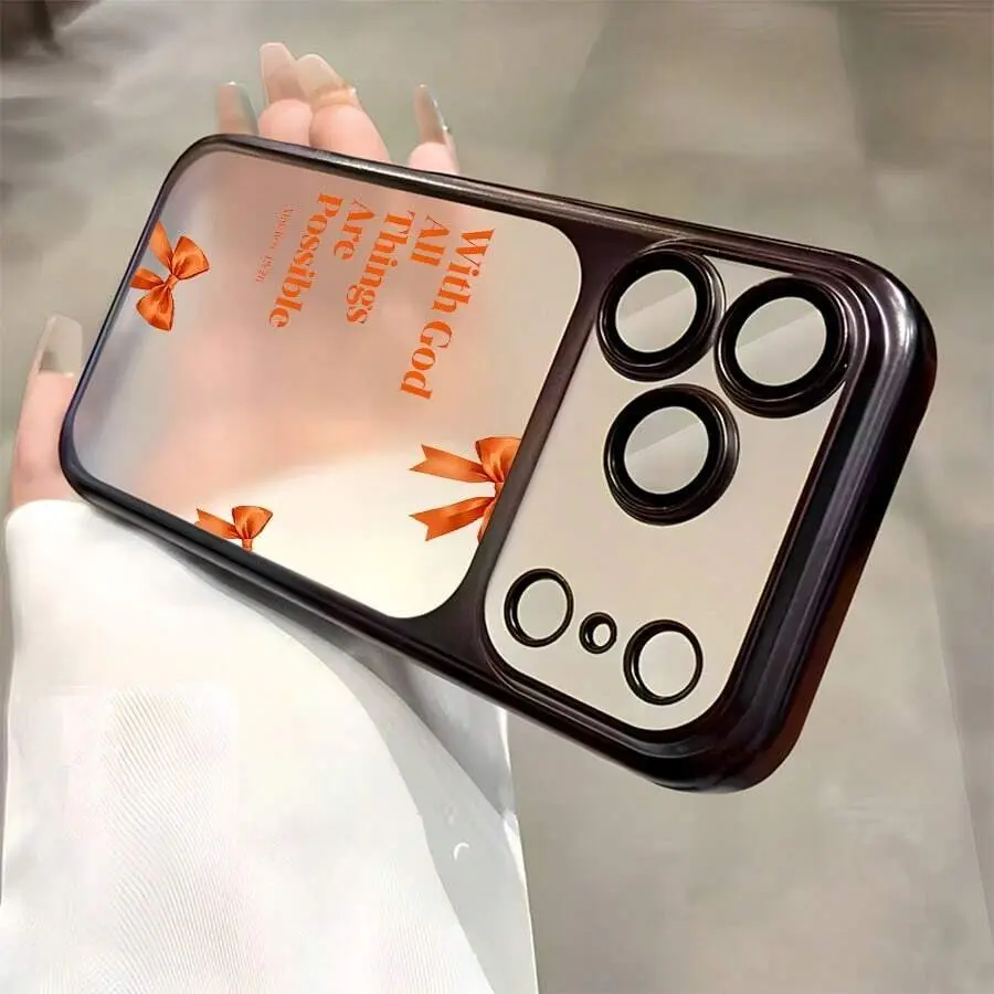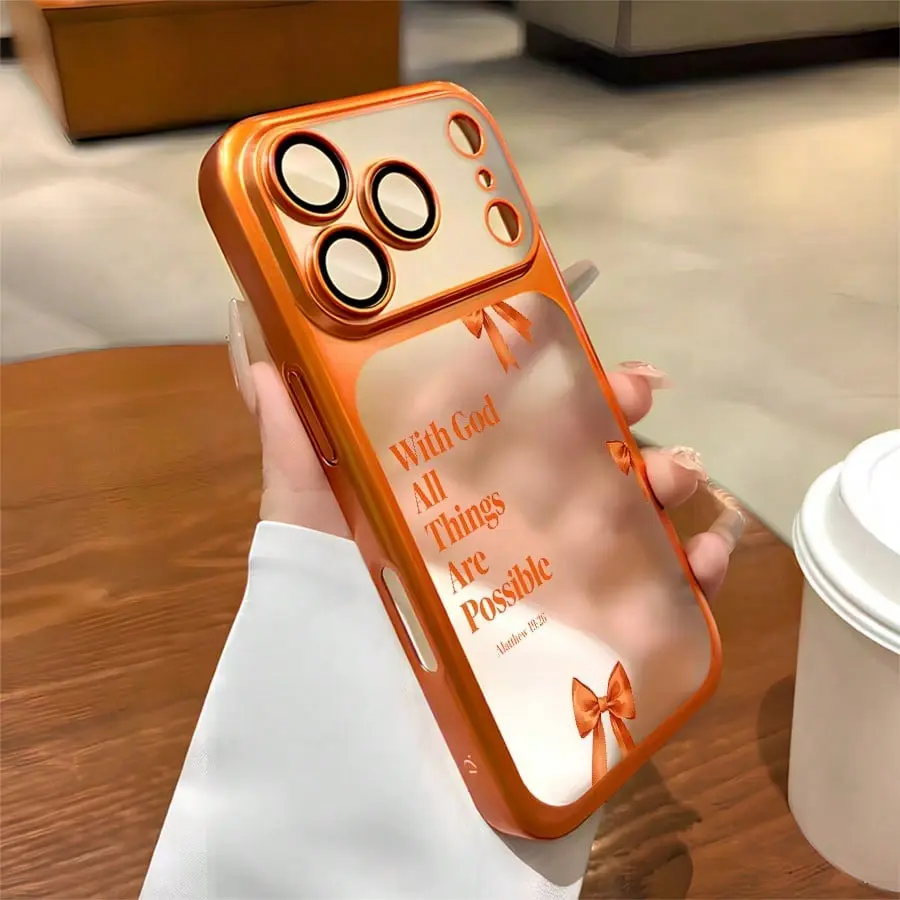 With God All Things Are Possible Patterned Electroplated Semi Transparent Frosted Fully Enclosed PC Orange Color Hard Case Compatible With iPhone 17 Pro Max Air 16 15 14 13 12 Ideal Gift For Christmas Valentine's Day