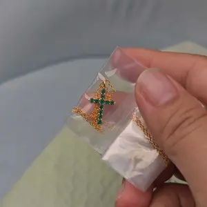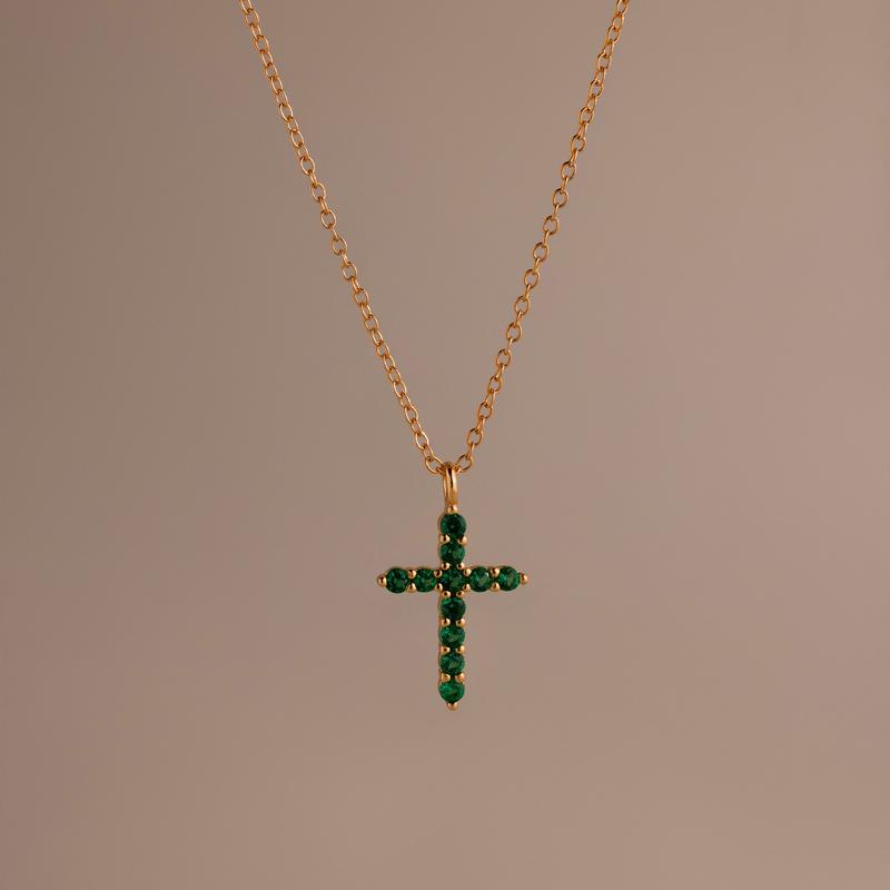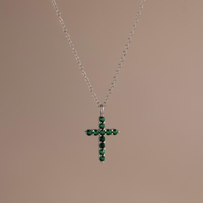 ·Dimensions: 16x12mm Cross Pendant | 2mm CZ Emeralds