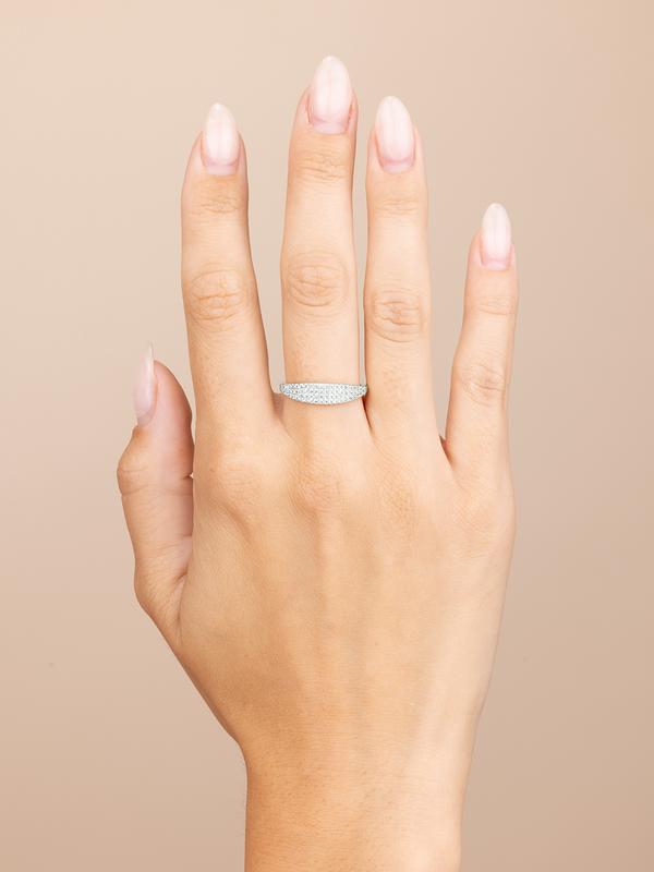 This ring is a low-key piece with just enough detail to catch the eye. It can be worn solo or stacked, making it a versatile addition to any outfit. The ring features a 1.5mm band and a 5.1mm signet, adorned with 1mm-2mm clear CZ stones.
