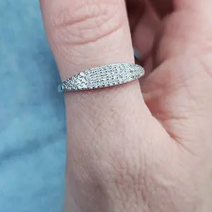 Loving this ring!! It’s covered with so many CZ’s to where you don’t see the silver🤩 Very high quality! Love that I don’t have to worry with Sterling Forever jewelry that I can shower with it and it won’t change colors.