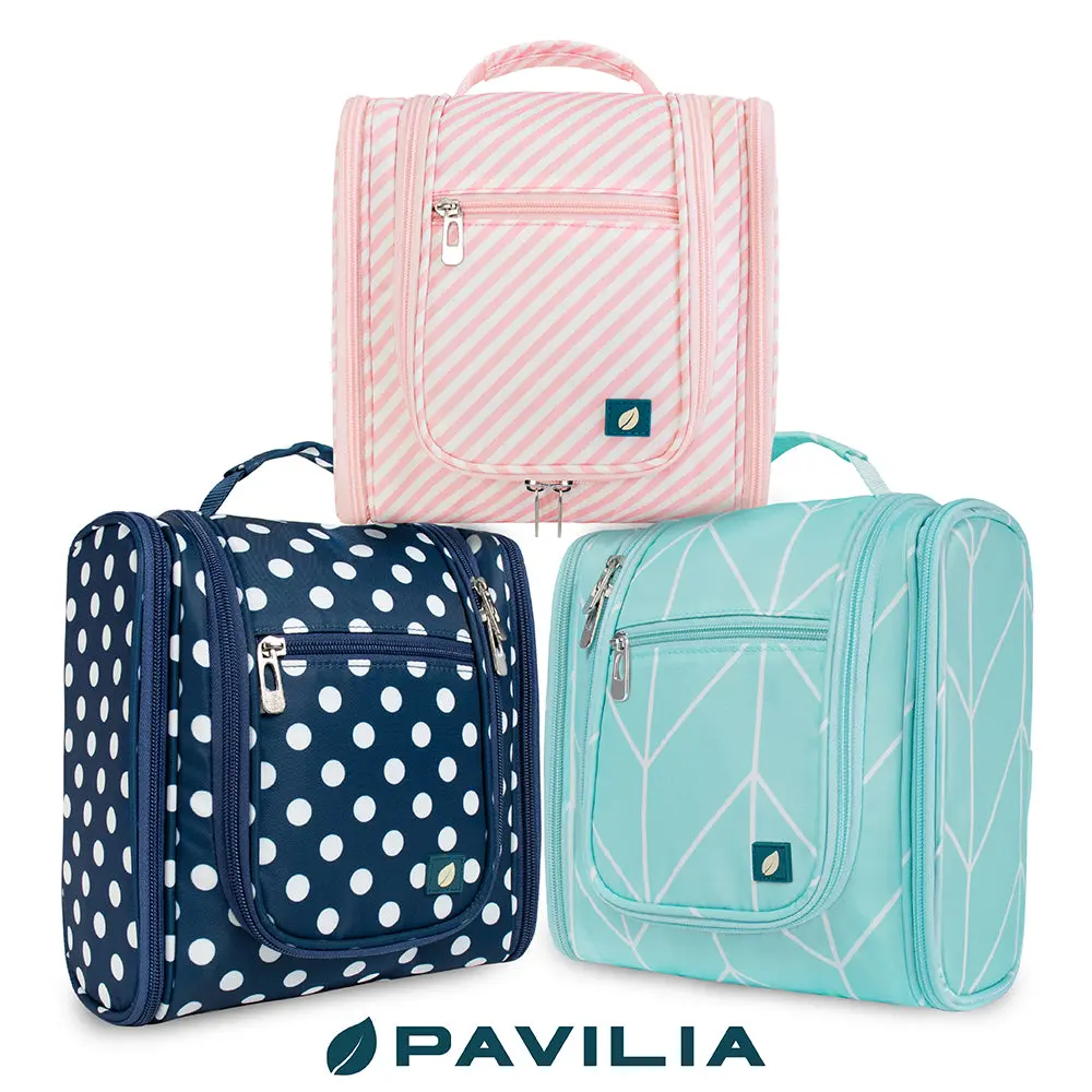 PAVILIA Toiletry Bag Travel Bag for Women Men, Hanging Cosmetic Organizer, Water Resistant Makeup Bag for Accessories Toiletries, Large Travel Essentials Kit