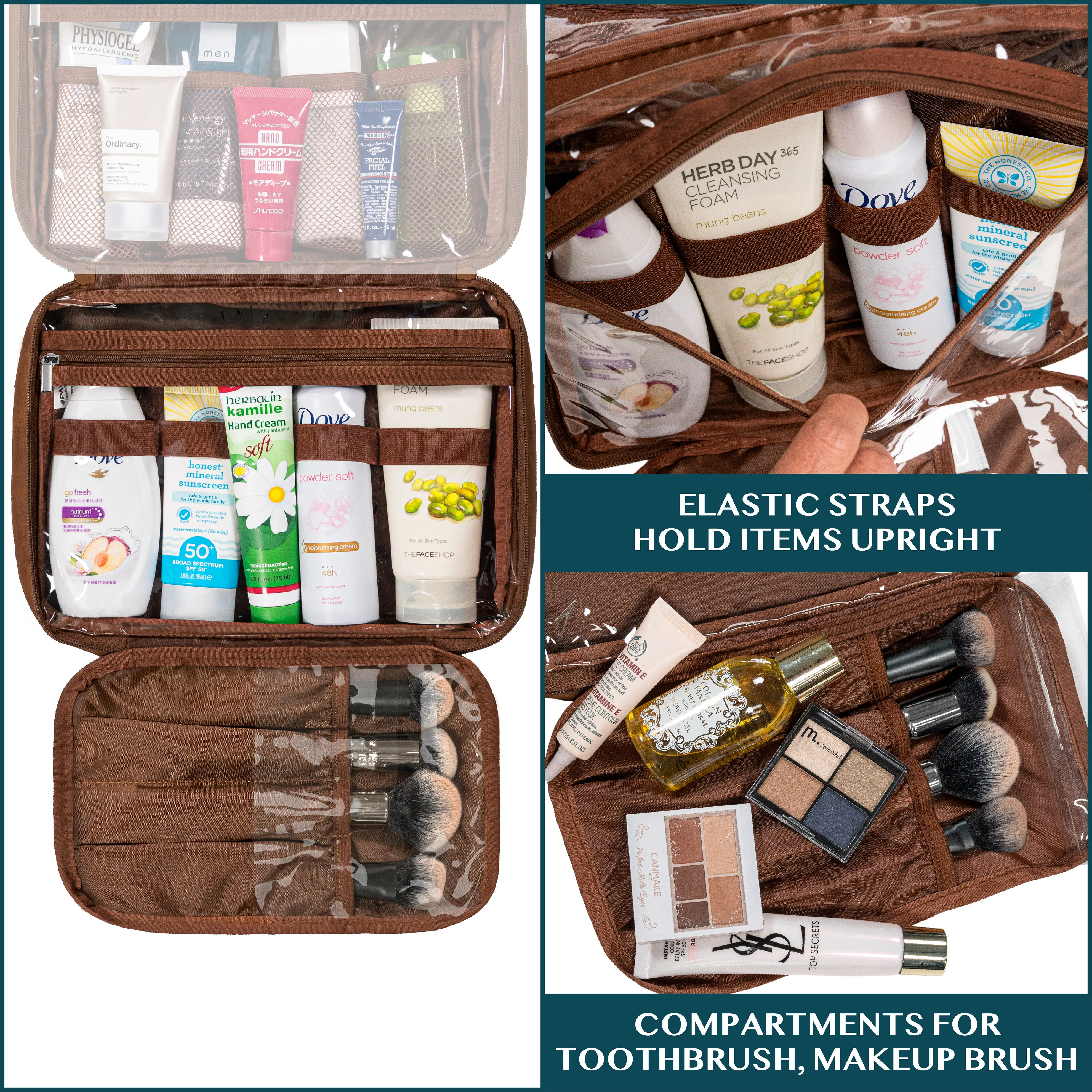 ·EASY TO CLEAN: Simply wipe clean with damp cloth to maintain the toiletry bag travel bag. With its water resistant polyester fabric and waterproof compartment, this travel kit for women keeps your travel-size item, shampoo, conditioner, lotion, face wash, medicine, toothpaste, toothbrushes, hair brush and daily makeups protected and organized for every trip, cruise, flight! A must have for every travel packing list!