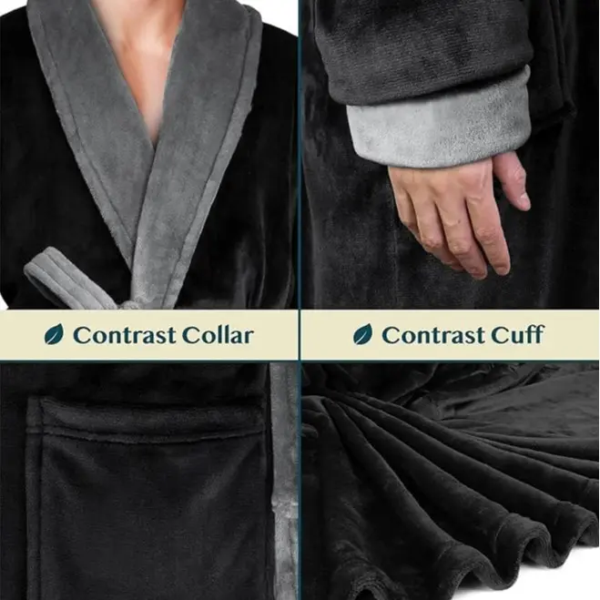 ·SOFT FLEECE MATERIAL – Enjoy the comfort of flannel fleece with our fluffy soft, lightweight, yet warm robe. The absorbent material is 260 GSM, perfect for use after the shower, at the spa, or for lounging around in supreme comfort at home. Whether during cold nights or breezy summer afternoons, the robe is lightweight enough to be used all year round.