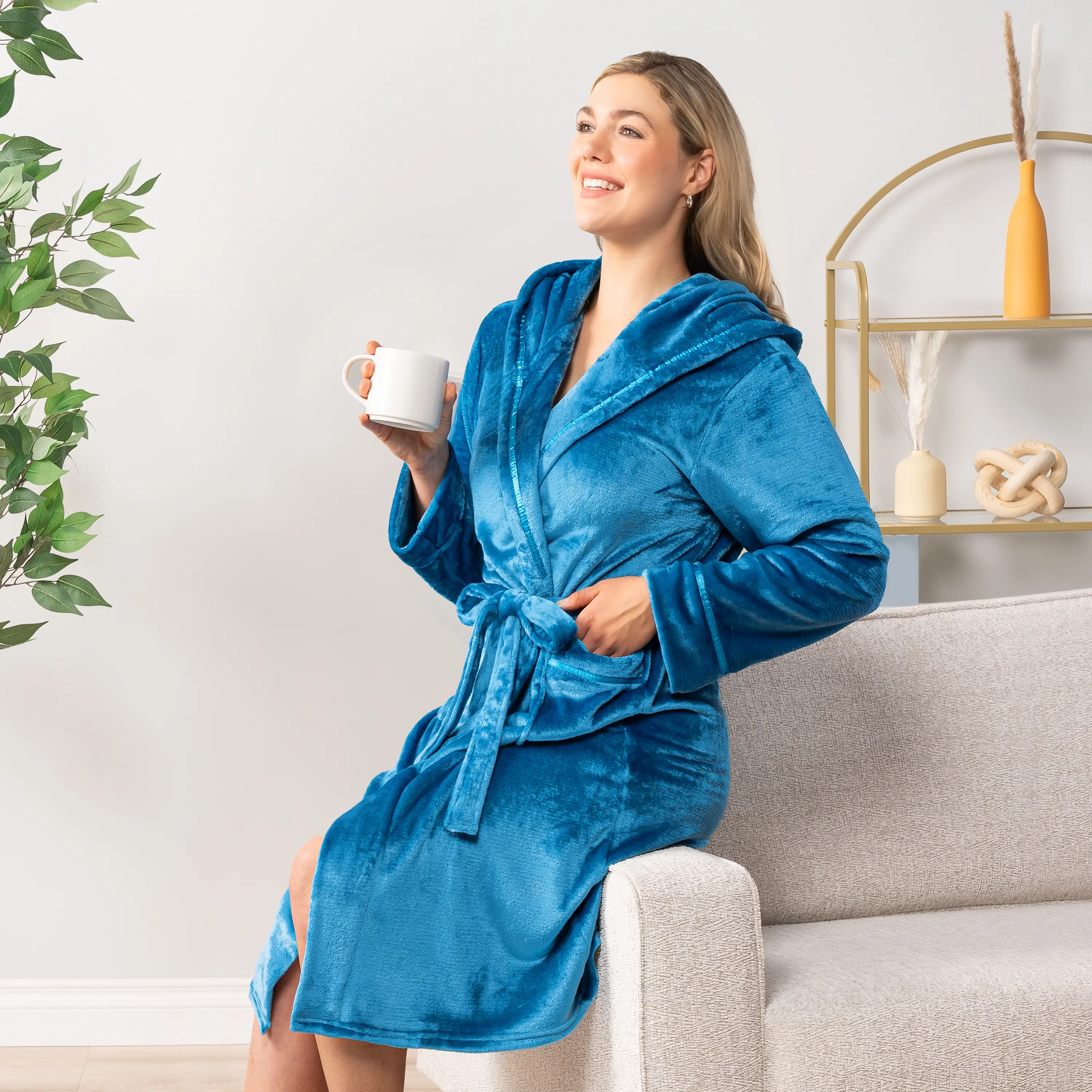 Our Premium Women Fleece Robe is soft on your skin, lightweight, and keeps you warm. We accent the robe with satin trim to give it a classic feel!
