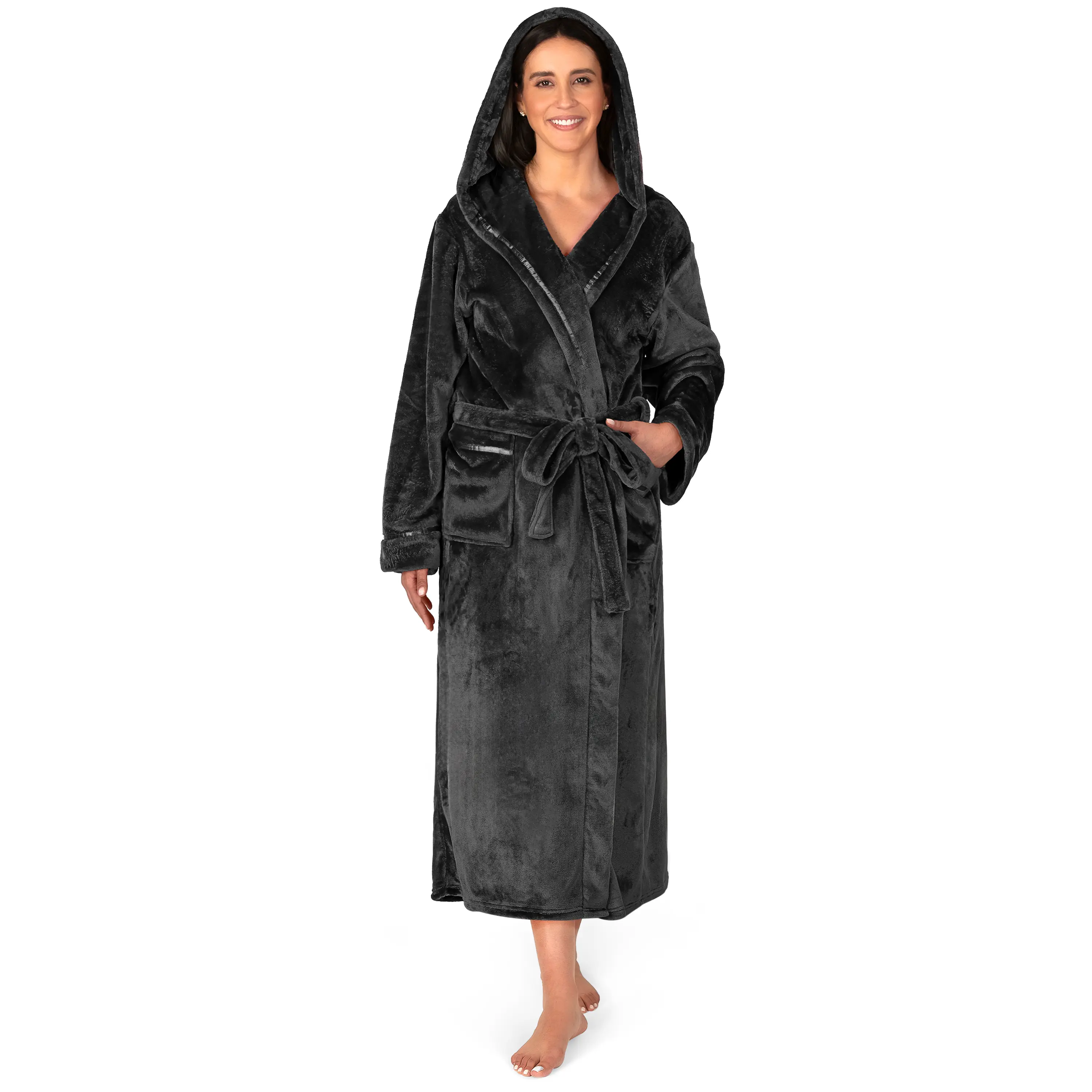 ·PERFECT FIT AND FUNCTIONAL Comes with a waist strap so you can adjust for perfect fit and 2 side pockets to keep all your essentials! The shawl collar neck is a classic and keeps your neck comfortable and warm. Long length robe with long sleeves for soft and snuggly warmth after spa, bath, or shower.