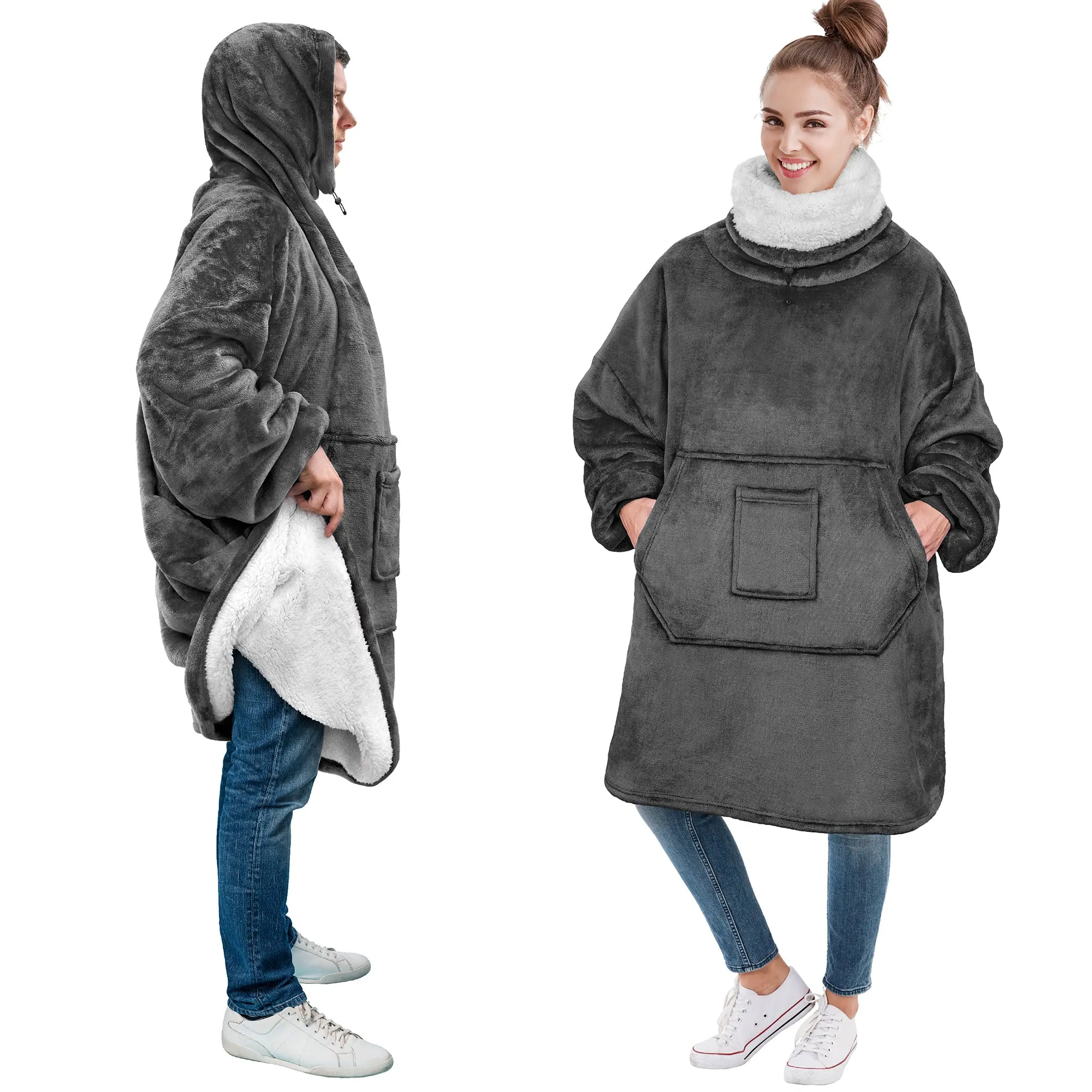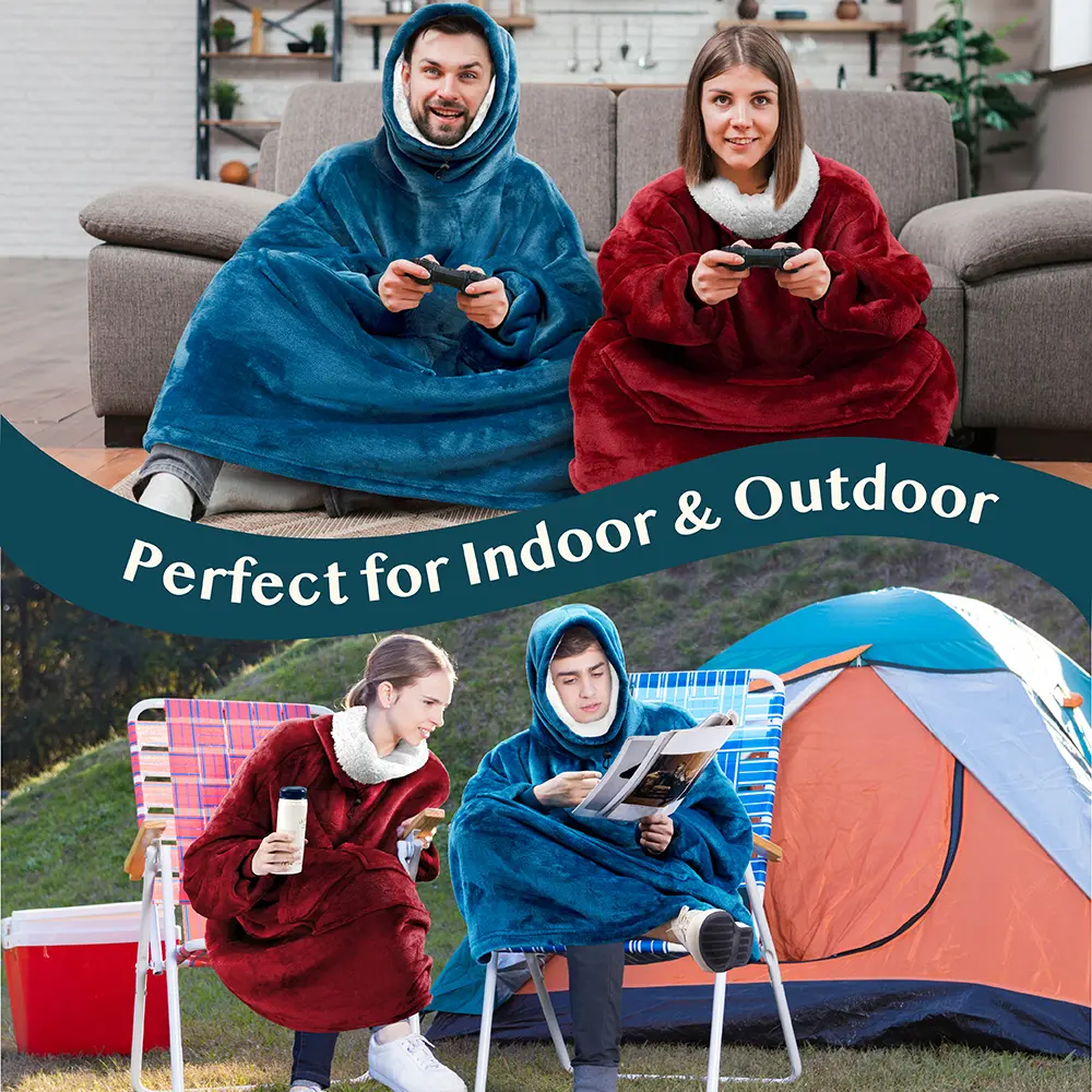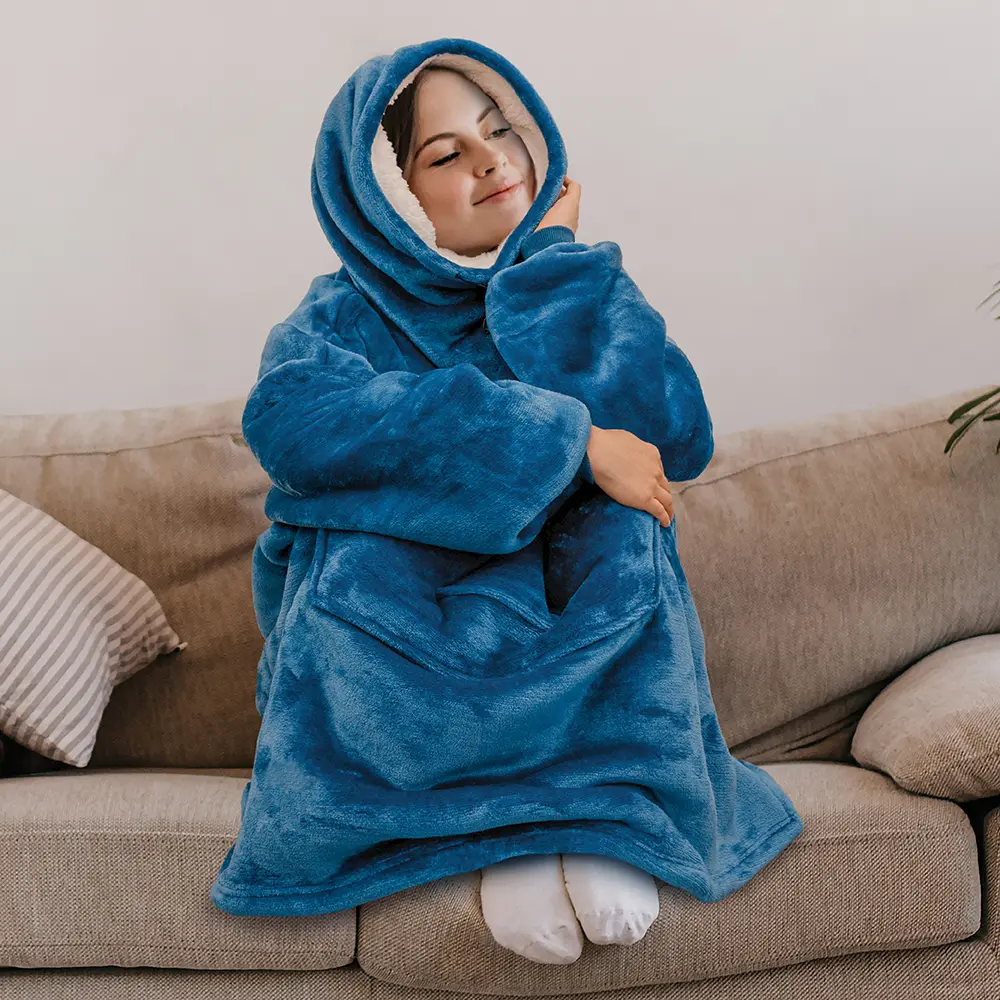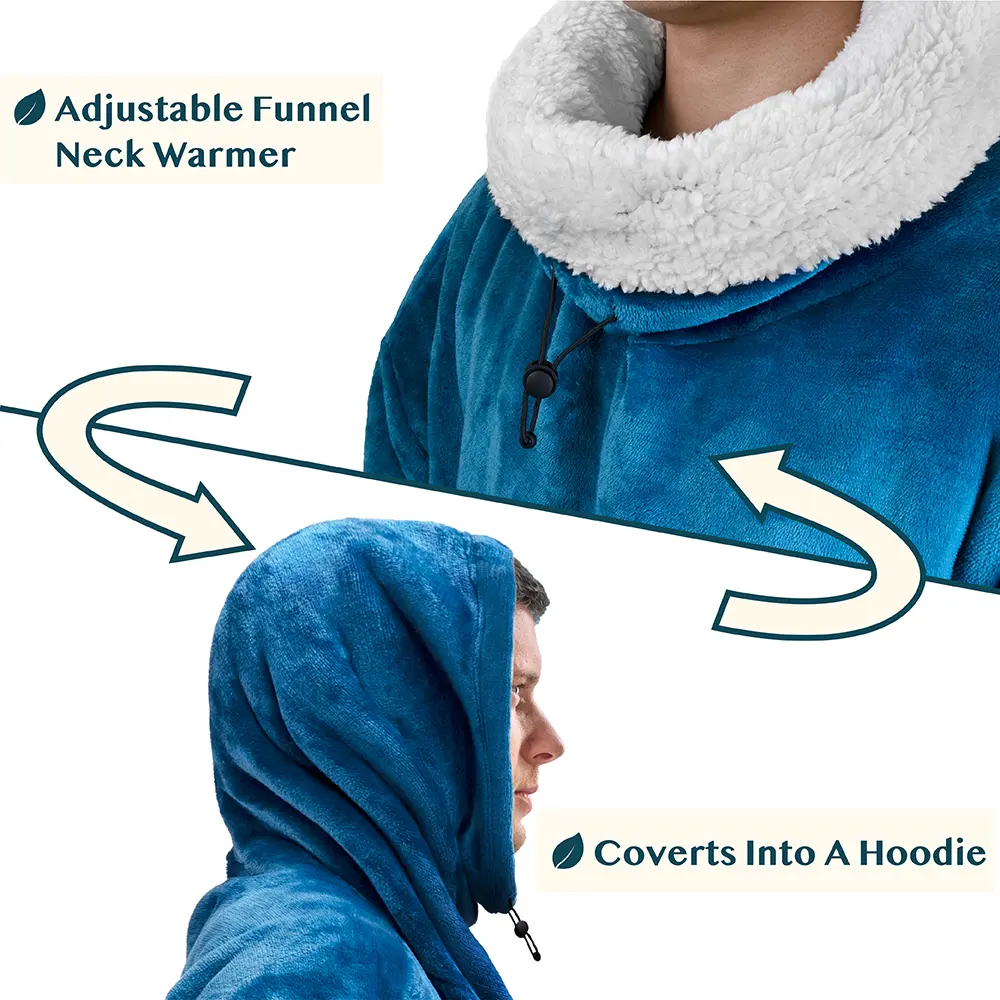 A perfect sweater and blanket all in one. Made from 260 GSM / 460 GSM of 100% premium microfiber fleece polyester, this blanket sweatshirt is super soft, comfortable and luxurious!