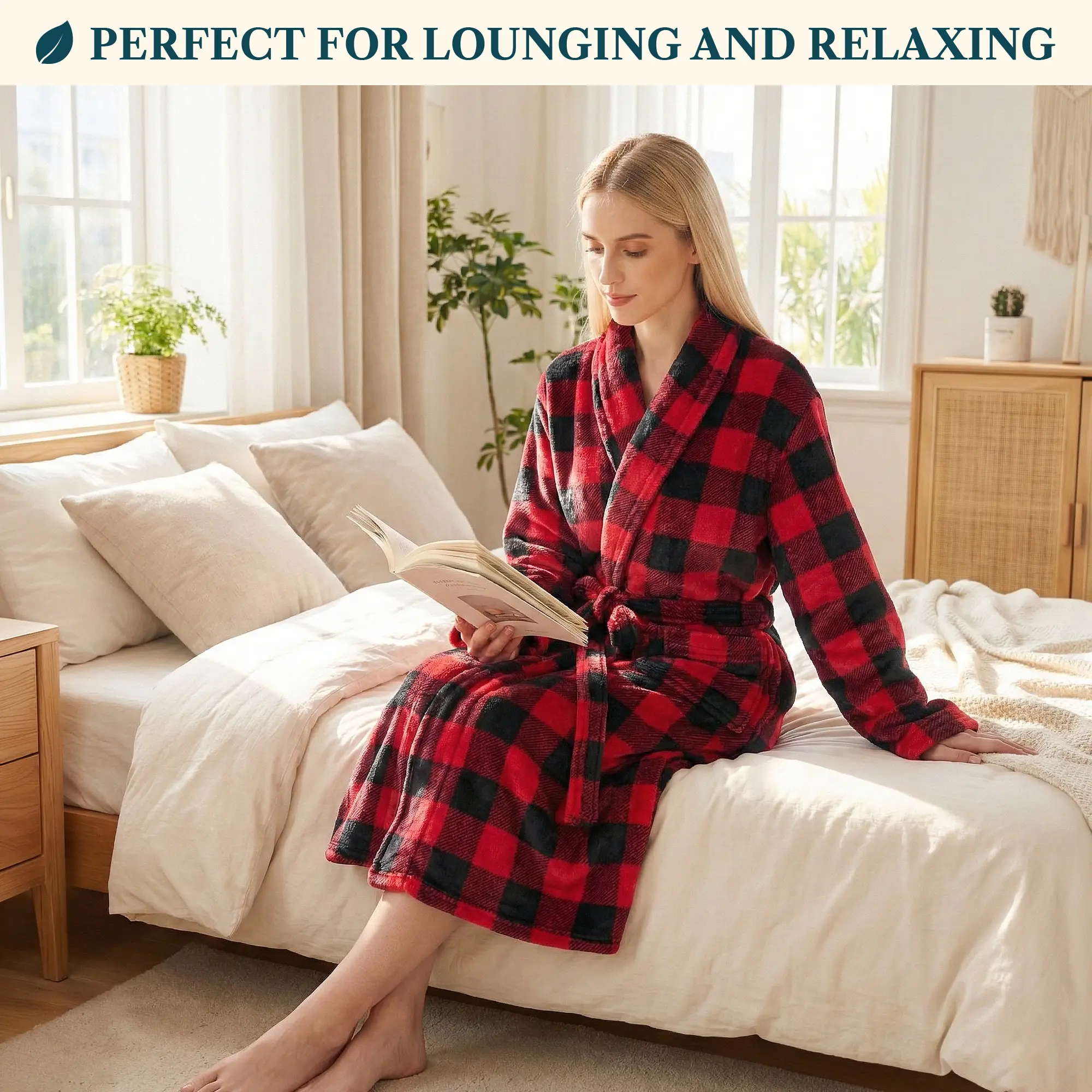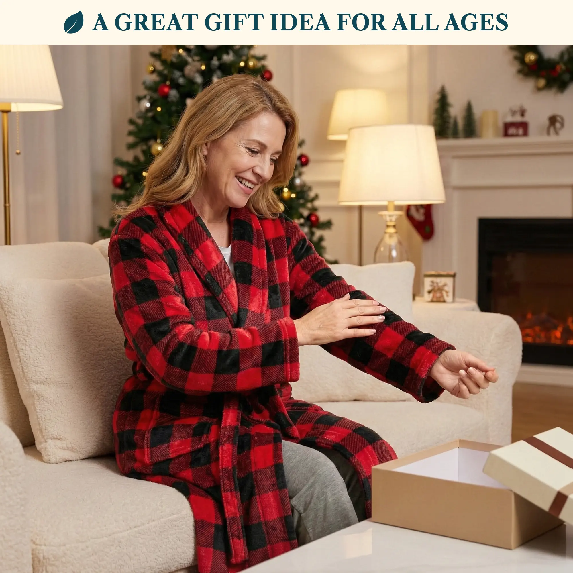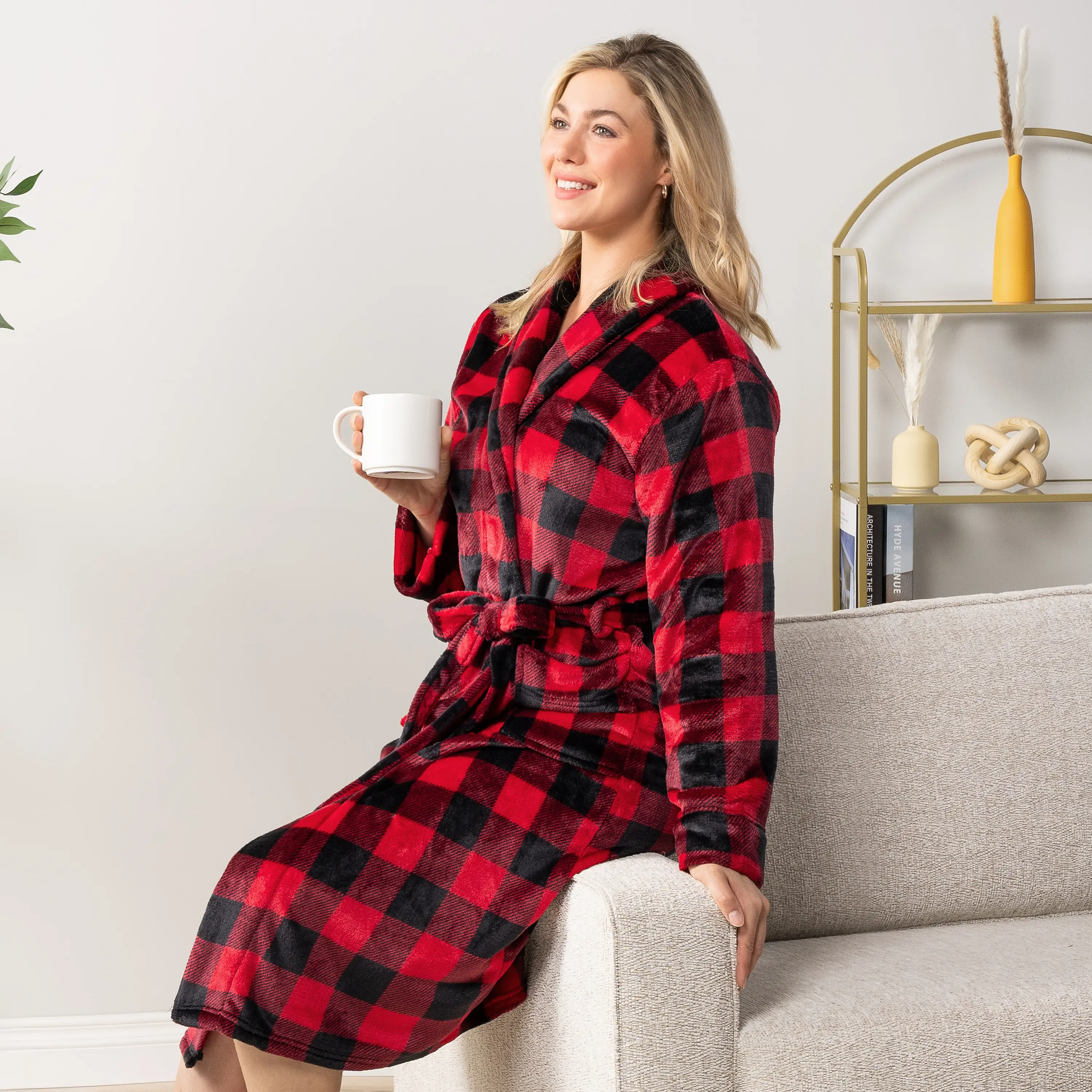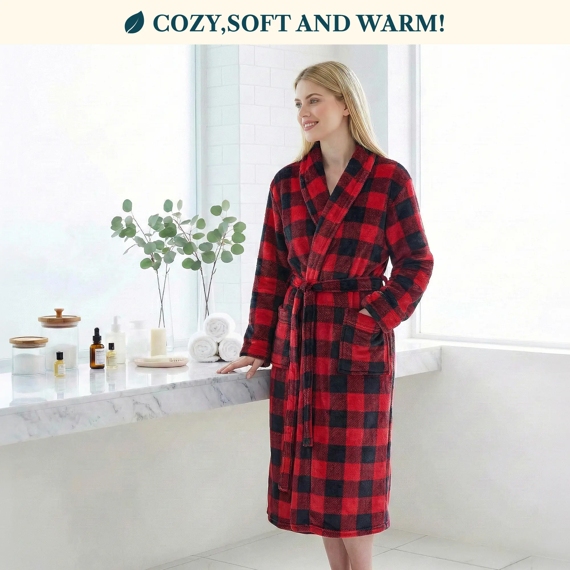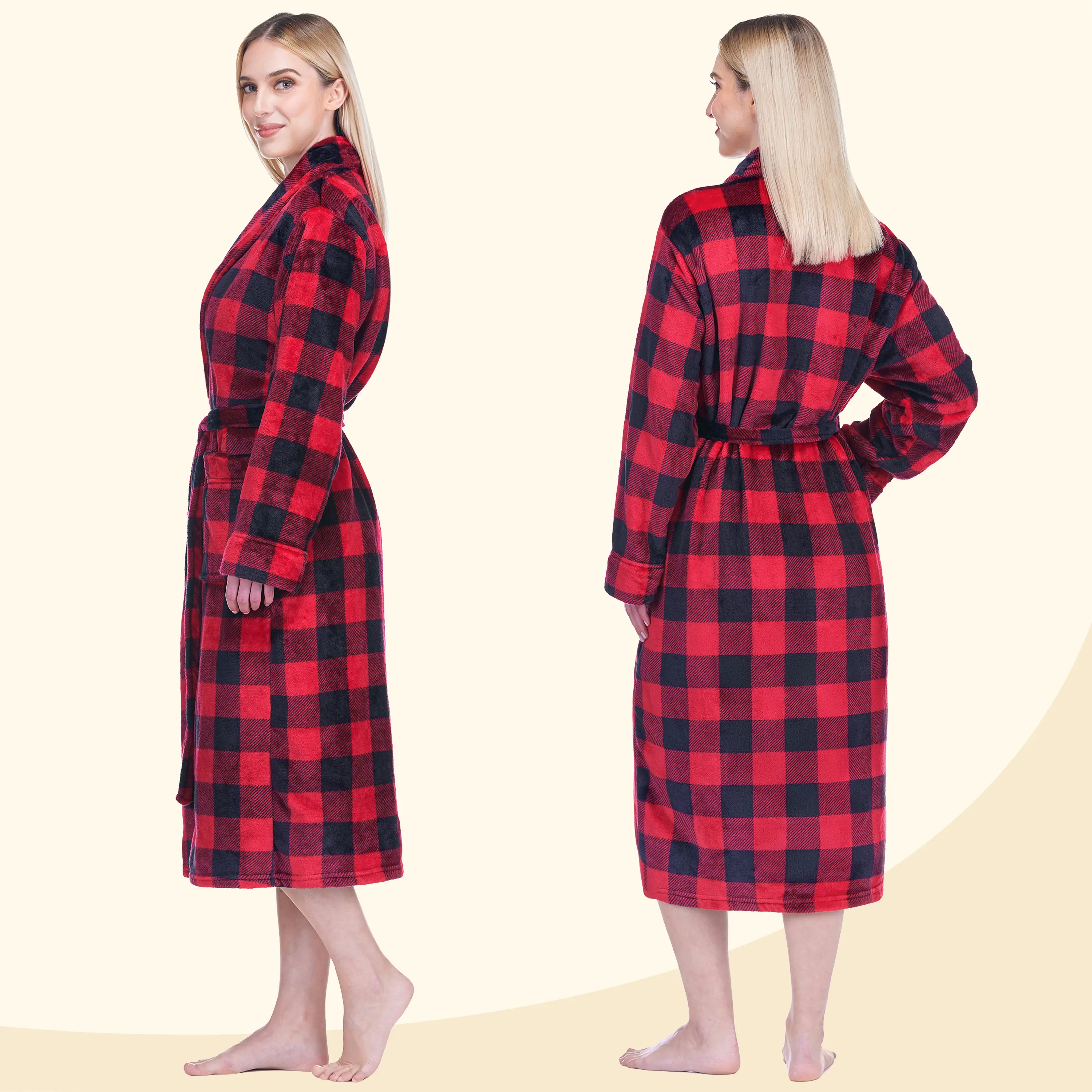 Our Premium Women Fleece Robe is soft on your skin, lightweight, and keeps you warm. We accent the robe with checkered print to give it a classic feel!