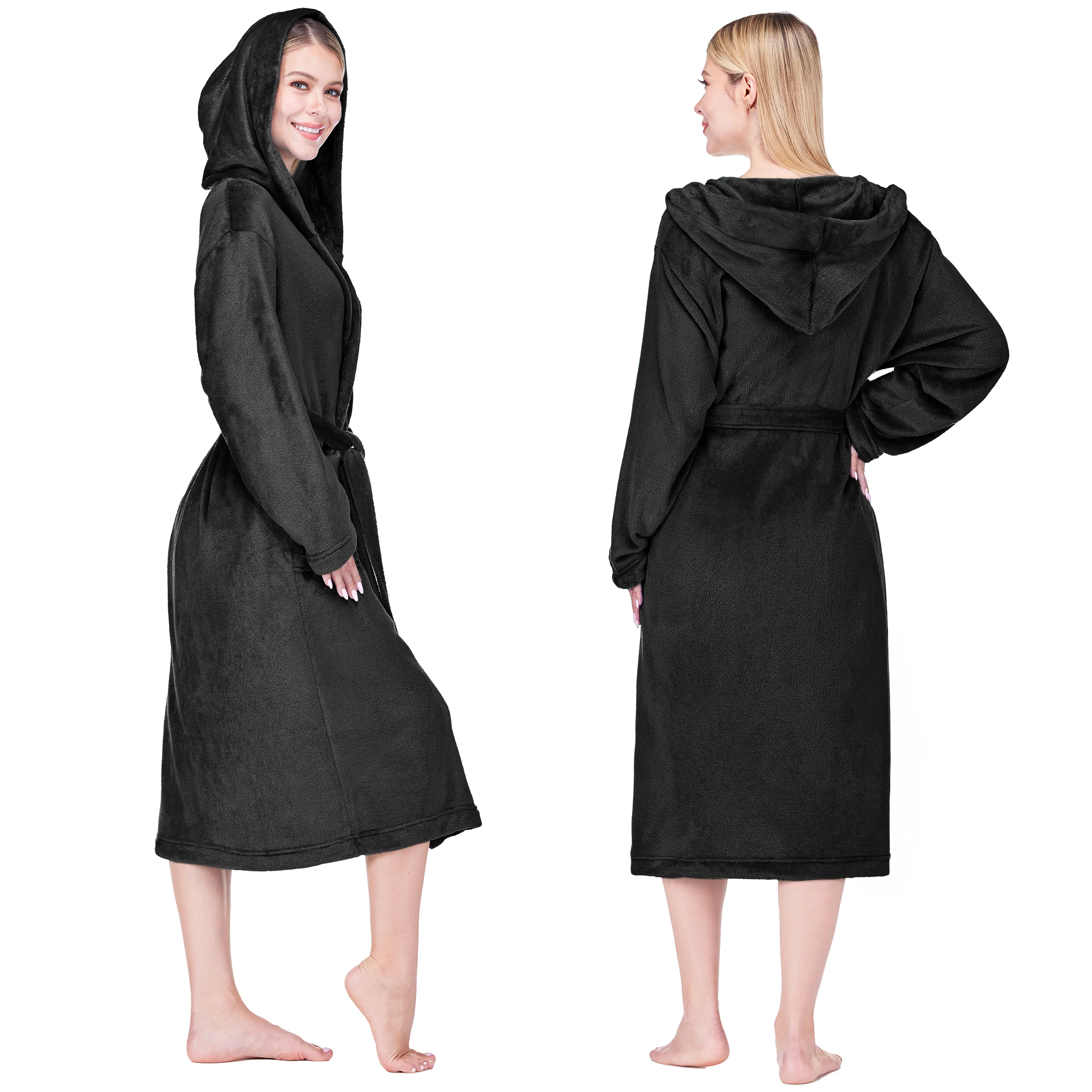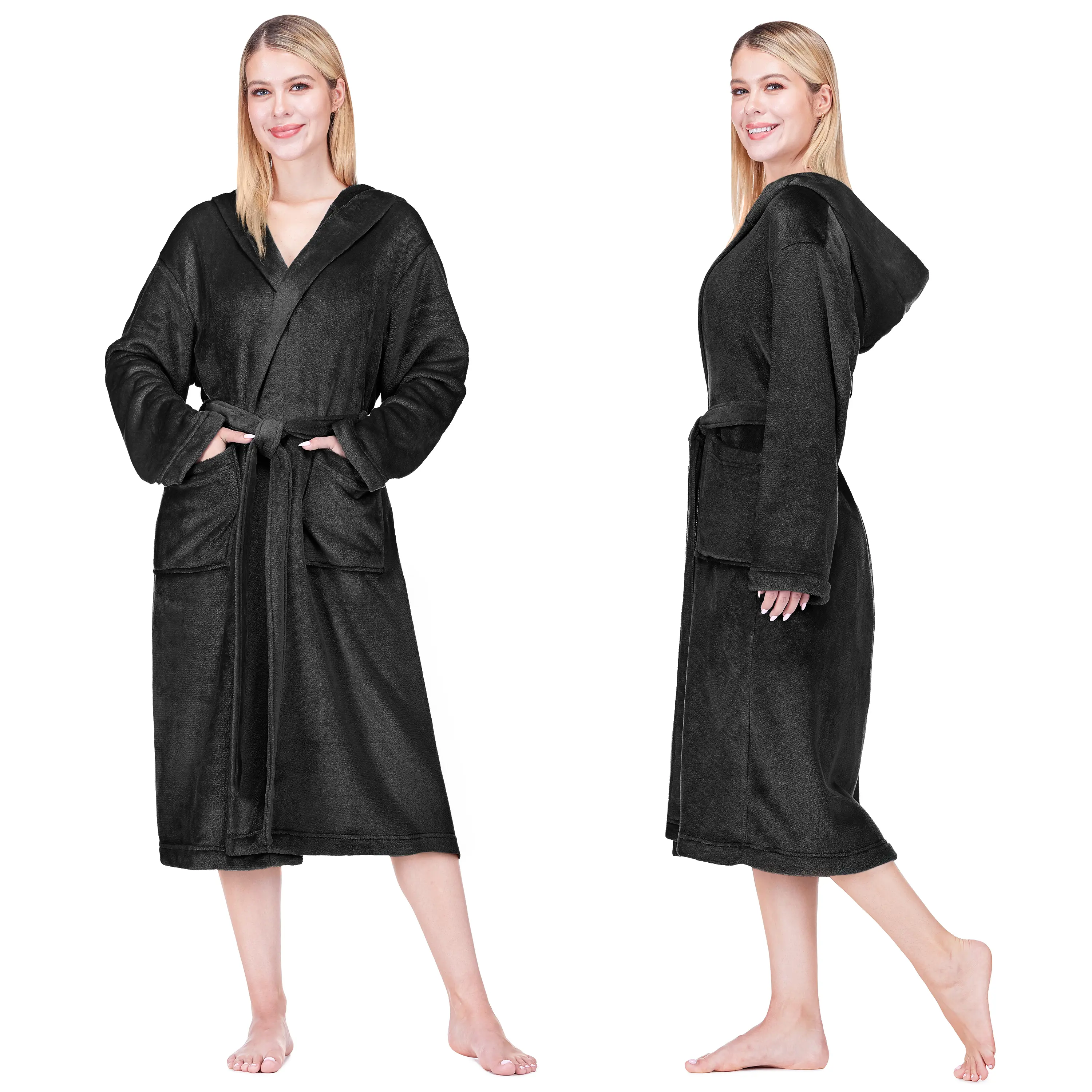 ·FUZZY BATHROBE FOR WOMEN LIGHTWEIGHT: This plush cozy shower hooded bathrobe is made from 200 GSM of 100% premium microfiber polyester, and offers the perfect combination of softness, lightweight feel, and remarkable durability. Crafted with meticulous attention to detail, this female towel robe with hood boasts high-quality and durable construction. Our long hooded bathrobe provides a comfortable and relaxed fit, offering the perfect balance of comfort and style.