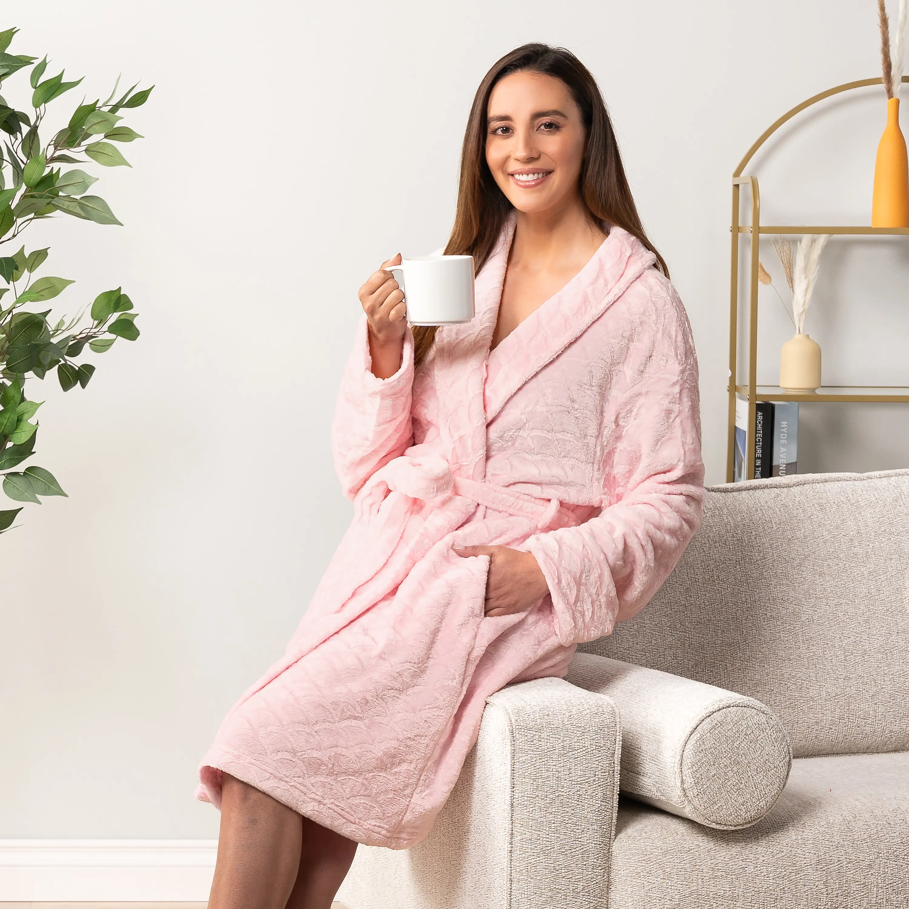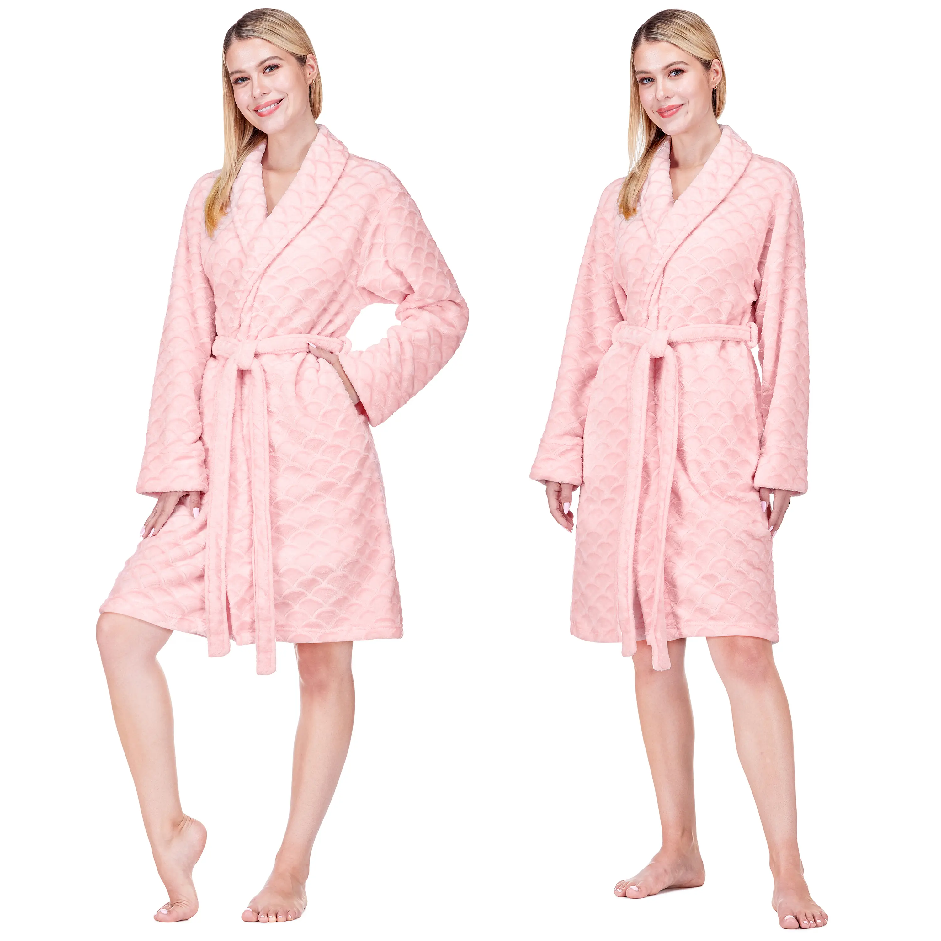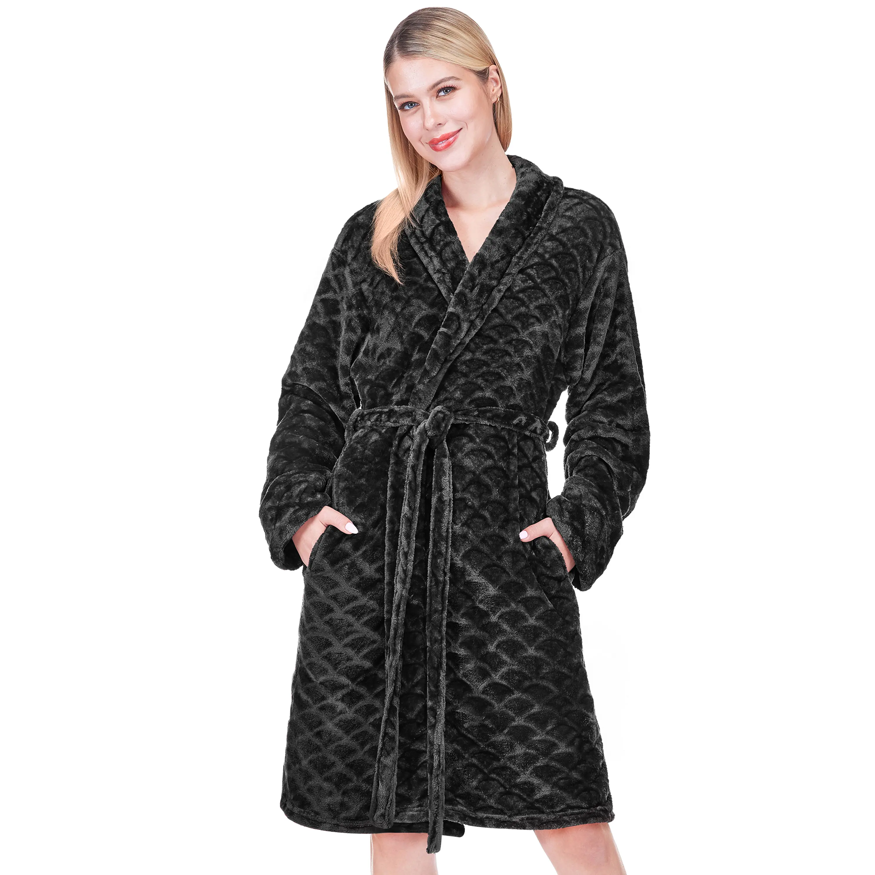 ·LOOK AND FEEL AMAZING: Pretty scallop print design with slight contrast to solid fabric gives this robe an understated elegance. Feel beautiful inside and out and look as amazing as you feel in this classic bath robe for ladies.