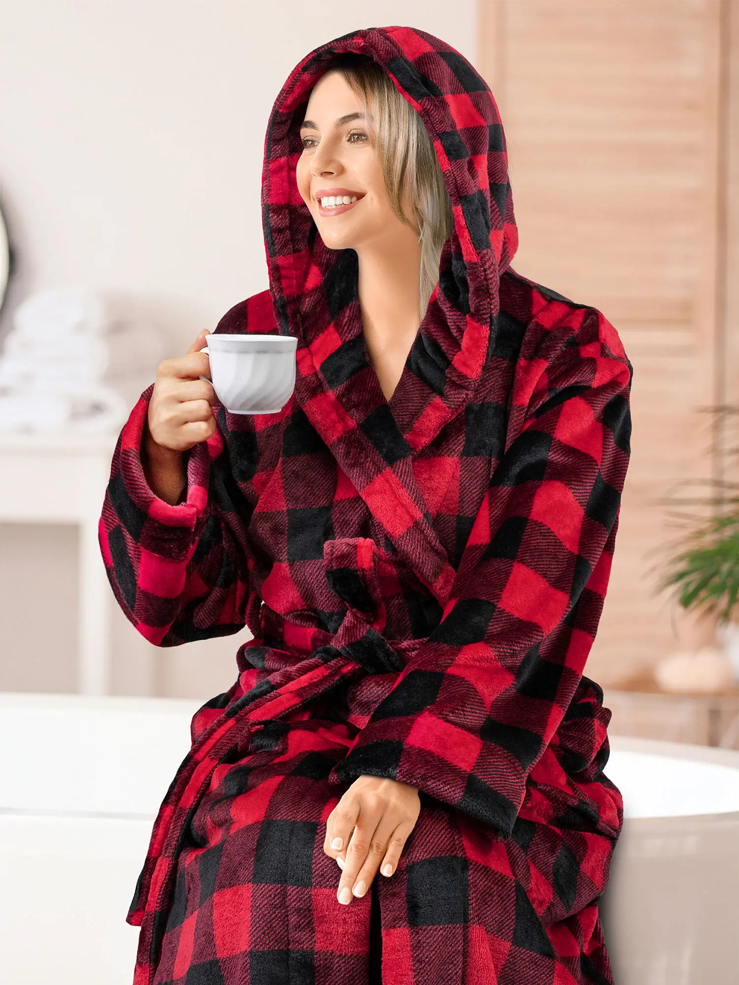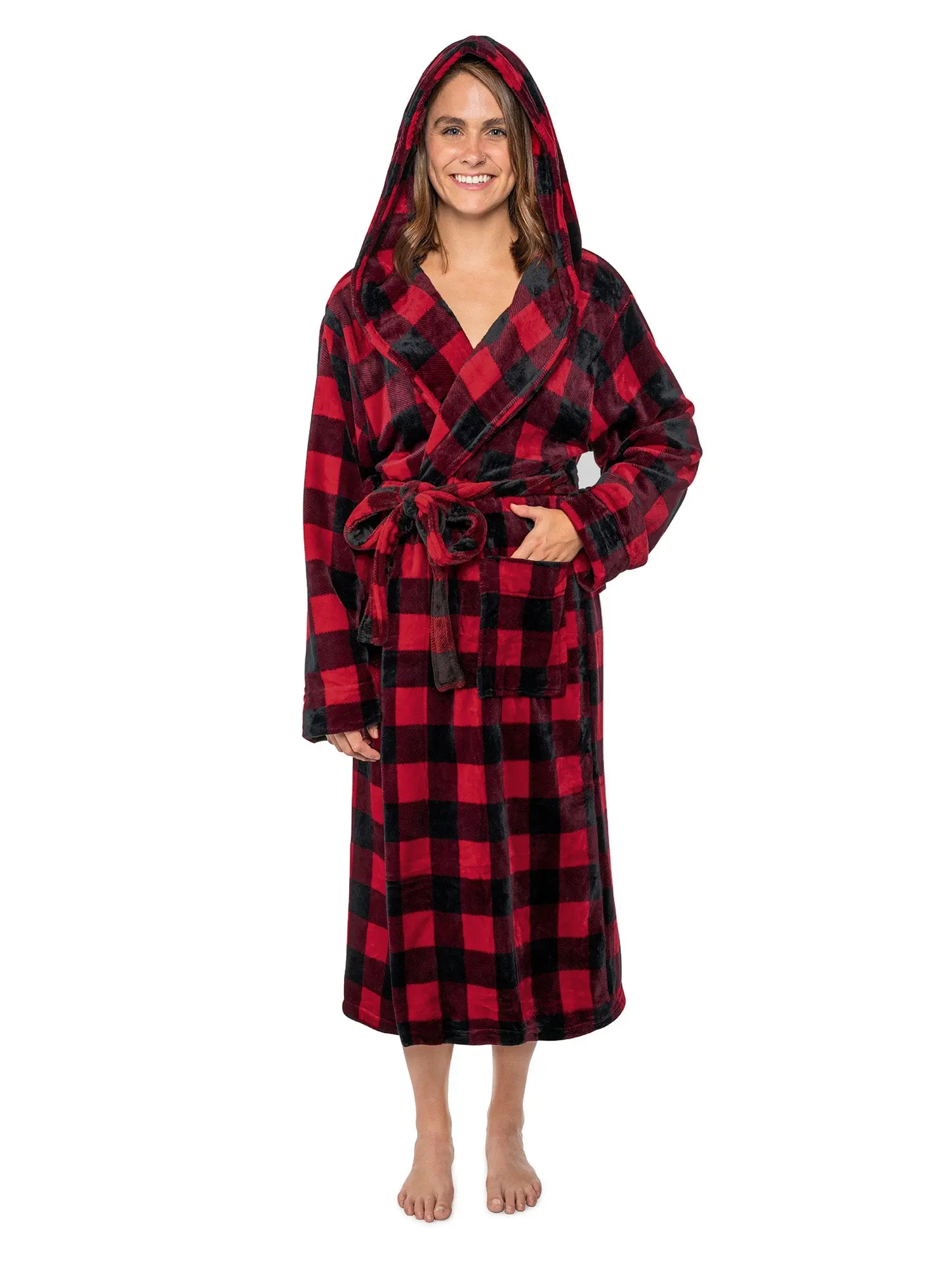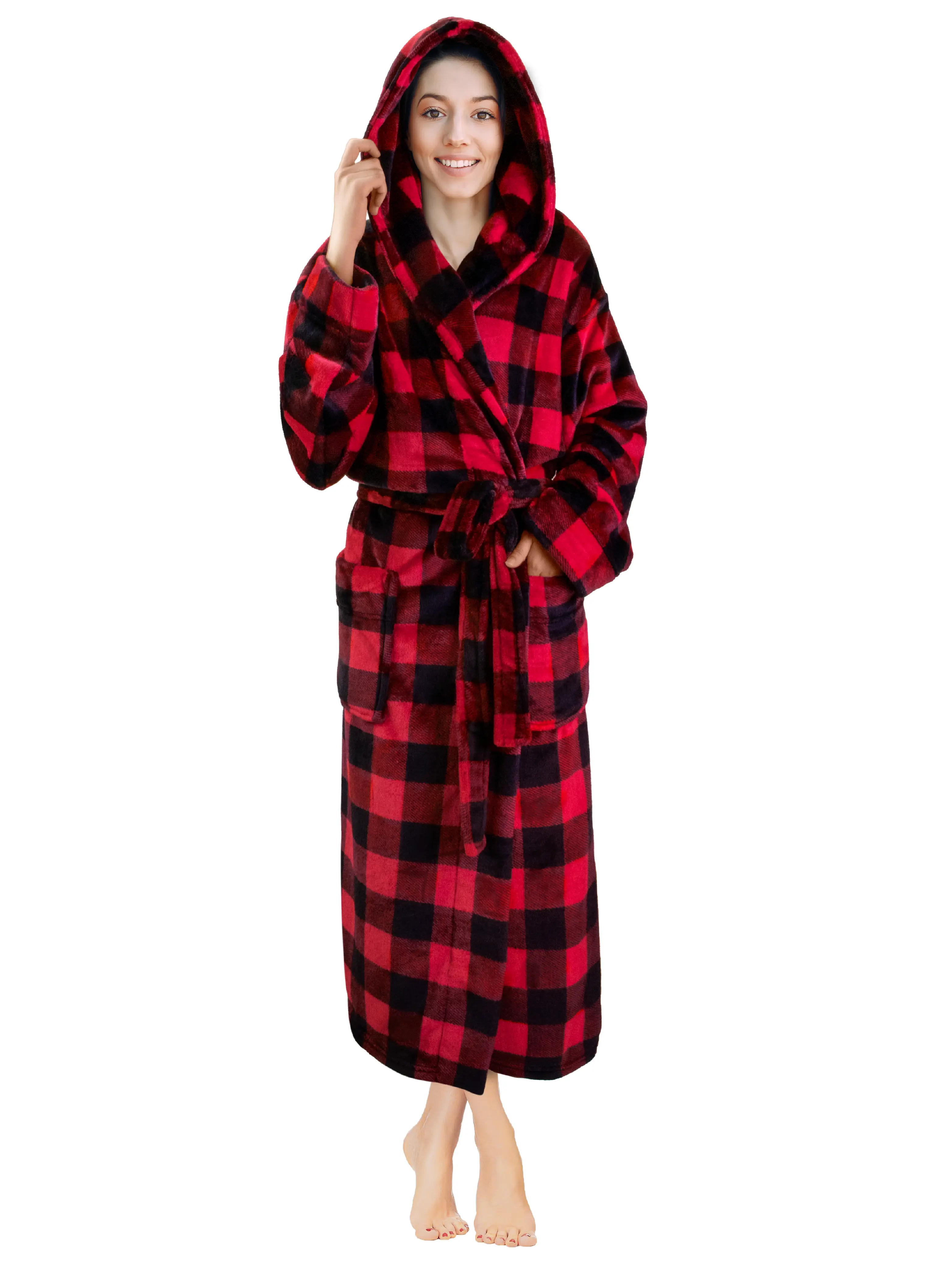 Our Premium Women Fleece Robe is soft on your skin, lightweight, and keeps you warm. We accent the robe with checkered print to give it a classic feel!
