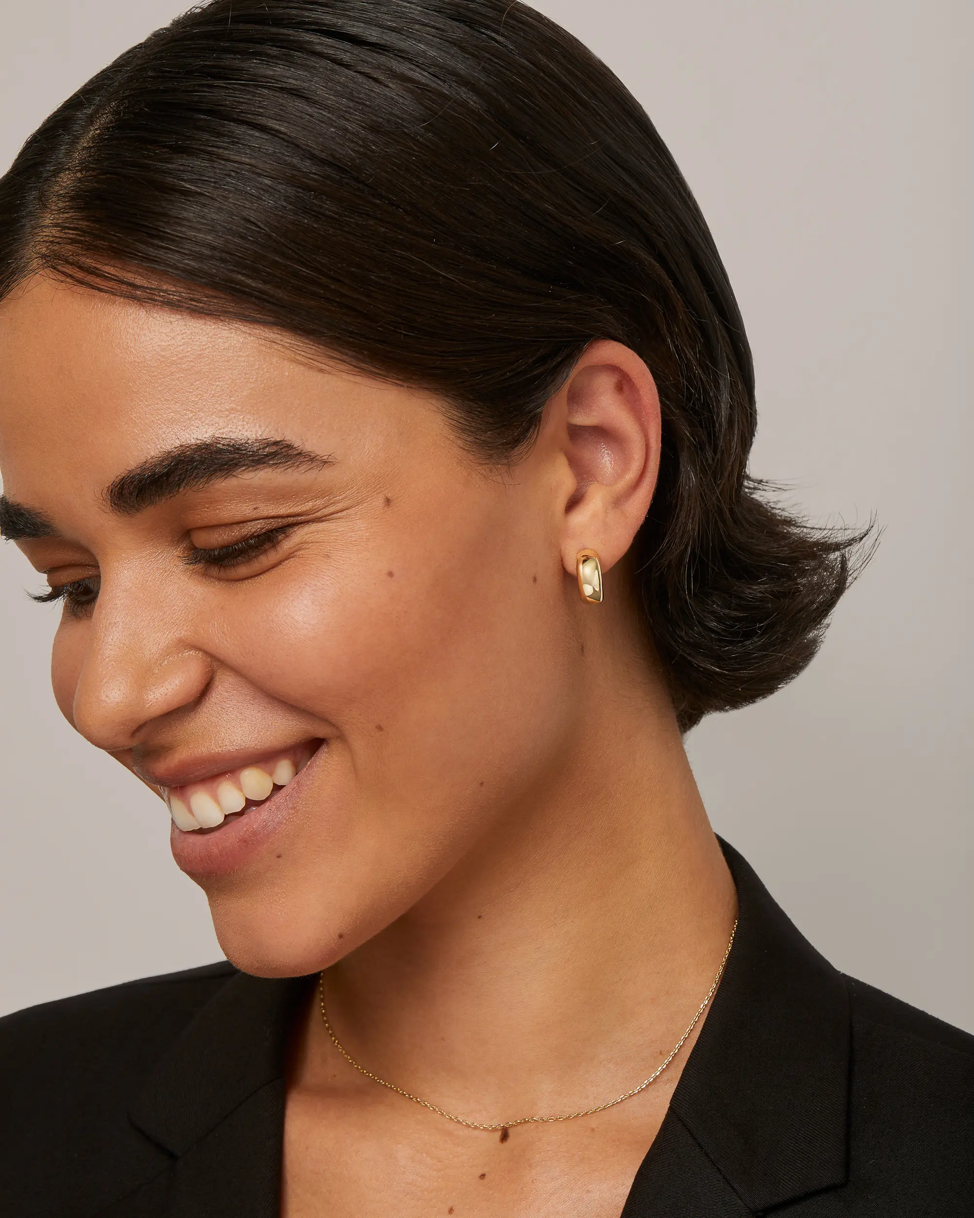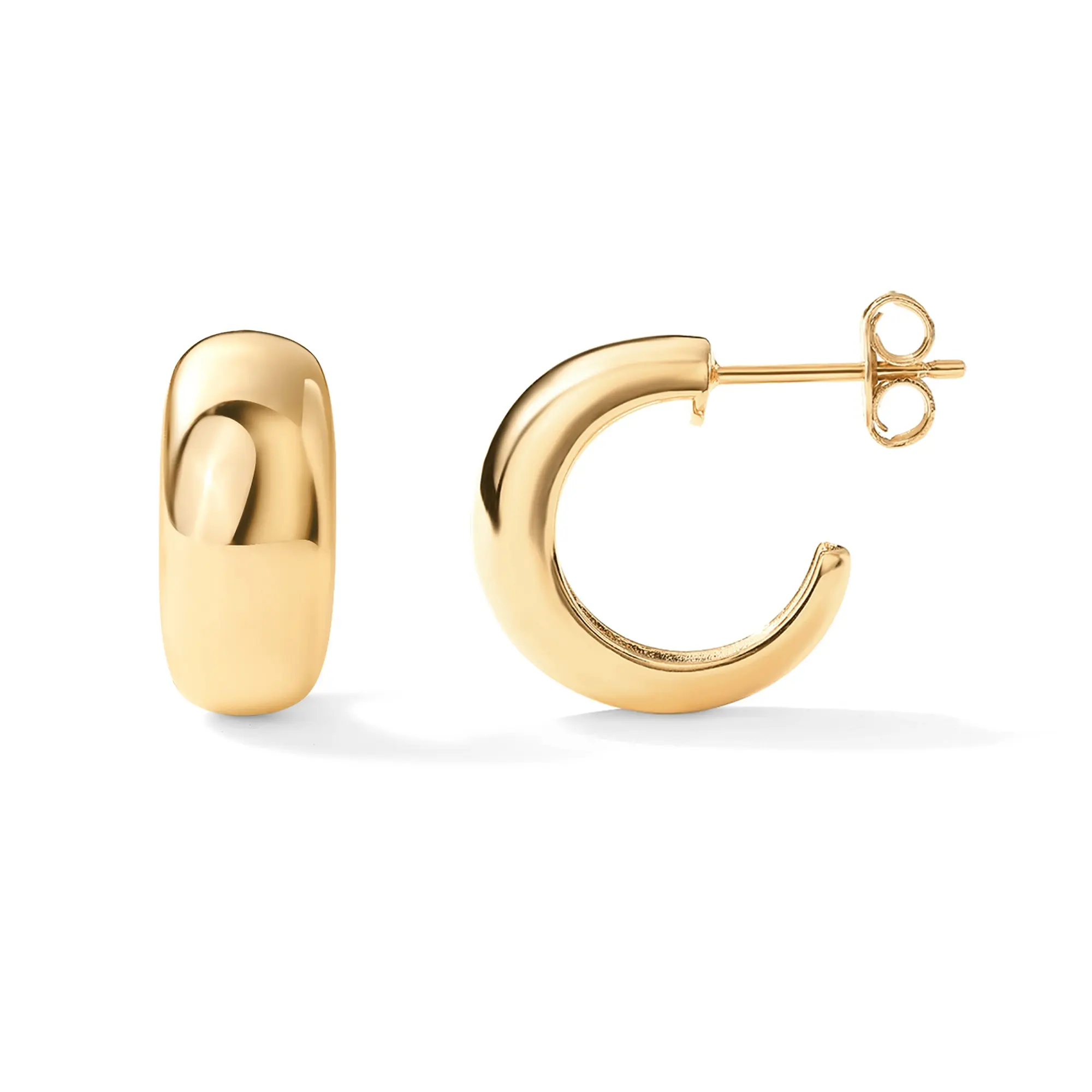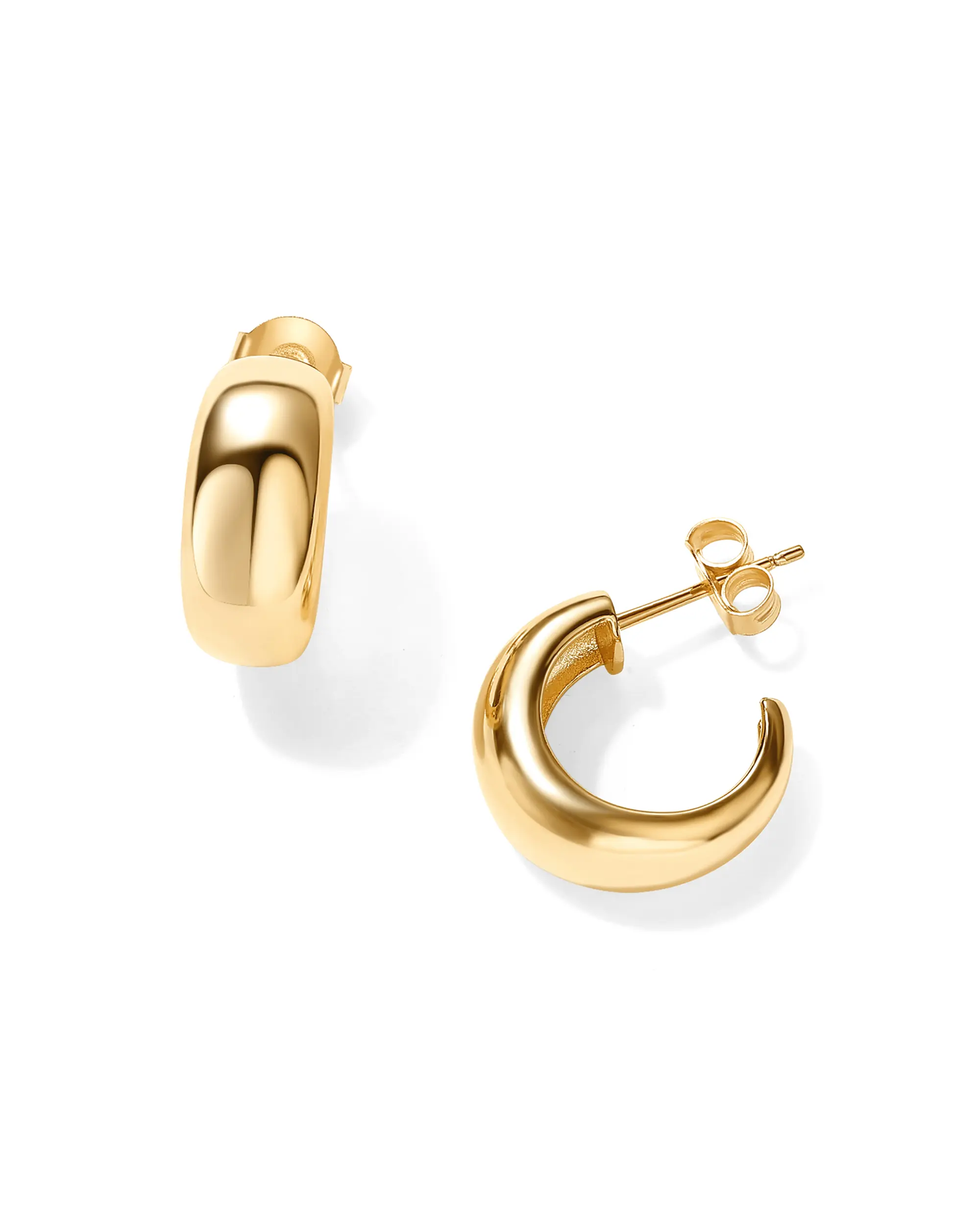 These earrings are exactly what I was looking for, small but bold. The thicker design makes them look more expensive and they sit nicely on the ears. They don’t pull or weigh down my lobes. I love how versatile they are, casual or dressy, they work with everything.