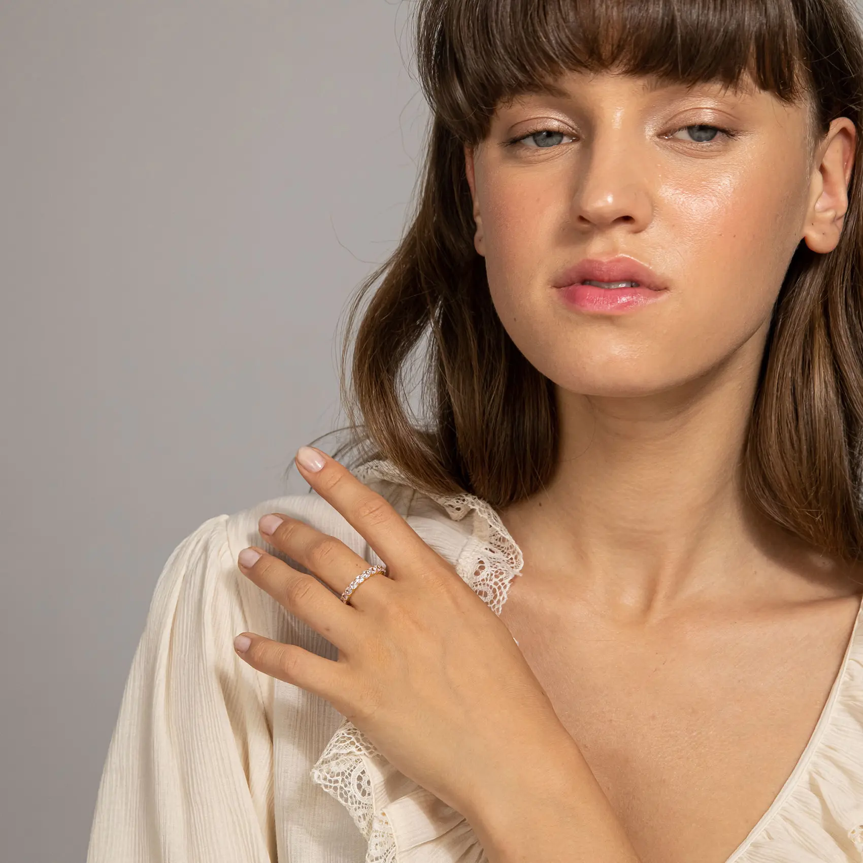 This ring is stunning!! I’ve gotten many compliments from just wearing it while running errands. The shine and sparkle are perfect and it compliments any outfit!!