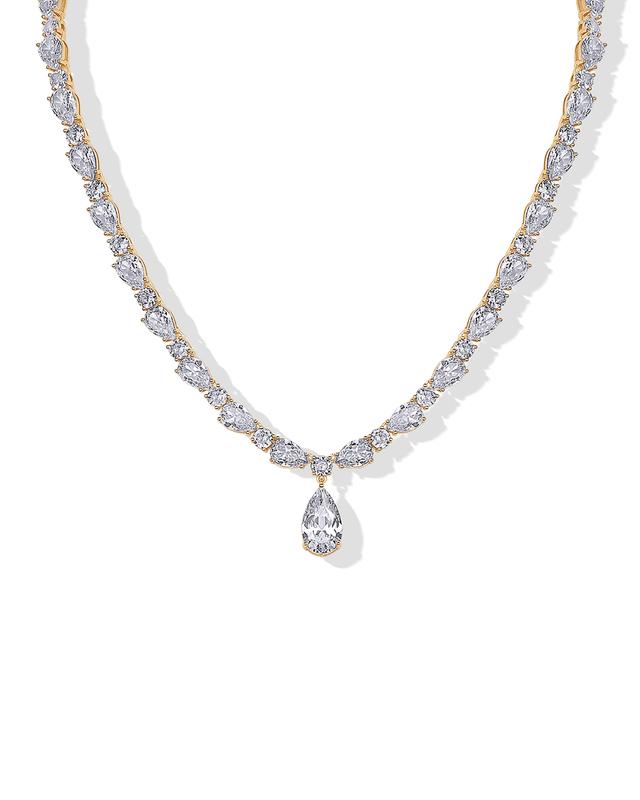 PAVOI 14K Gold Plated Tennis Necklaces for Women - Bridal Cubic Zirconia Tennis Necklace with Drop - Trendy Fashion Jewelry