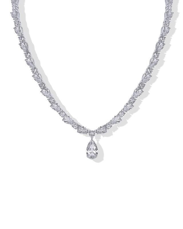 5. PAVOI 14K Gold Plated Tennis Necklaces for Women - Bridal Cubic Zirconia Tennis Necklace with Drop - Trendy Fashion Jewelry