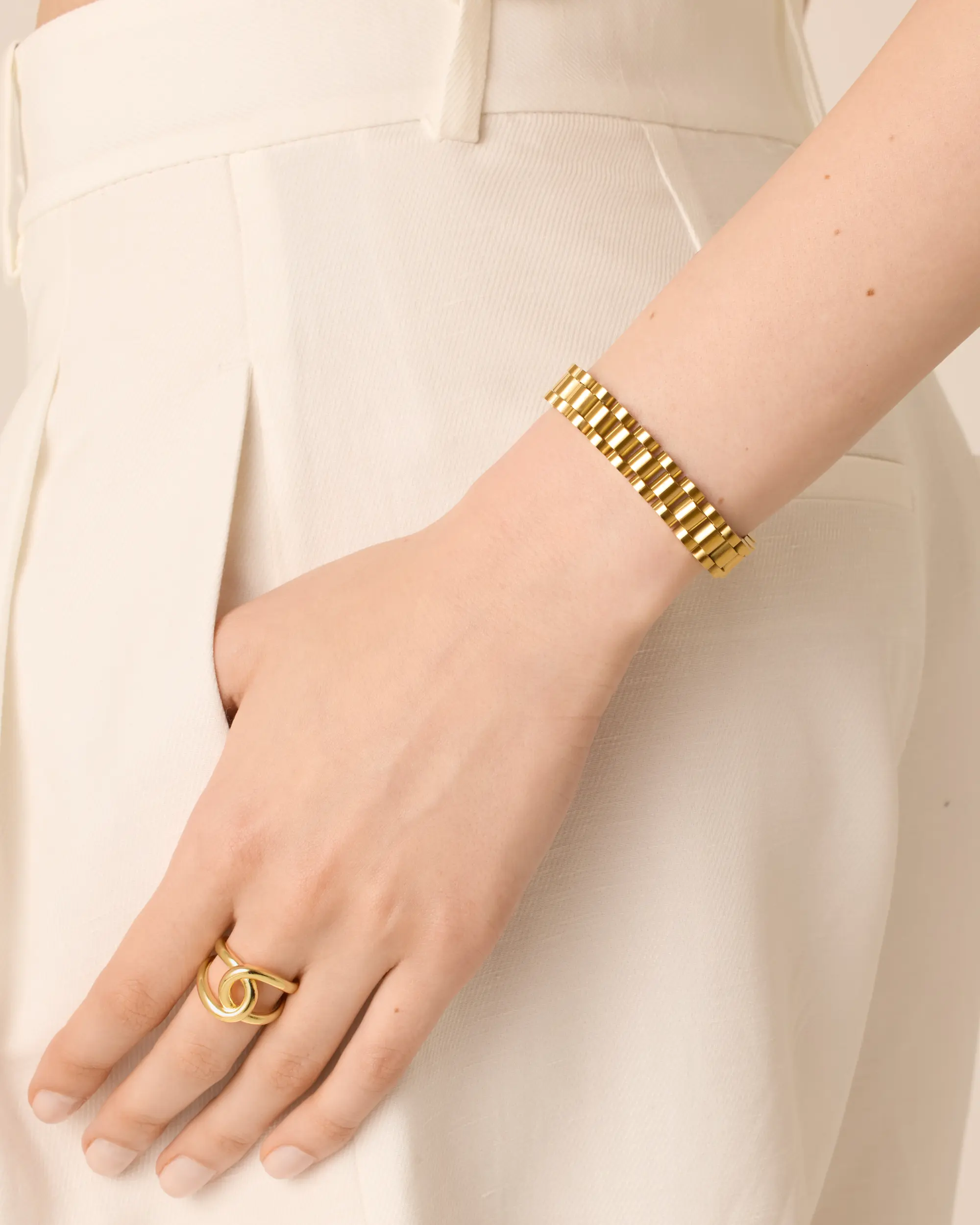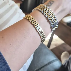 Love all of my bracelets. For reference I got the watch strap bracelet in 7 inches and the gold and silver bangle in 6.5. Excellent quality.