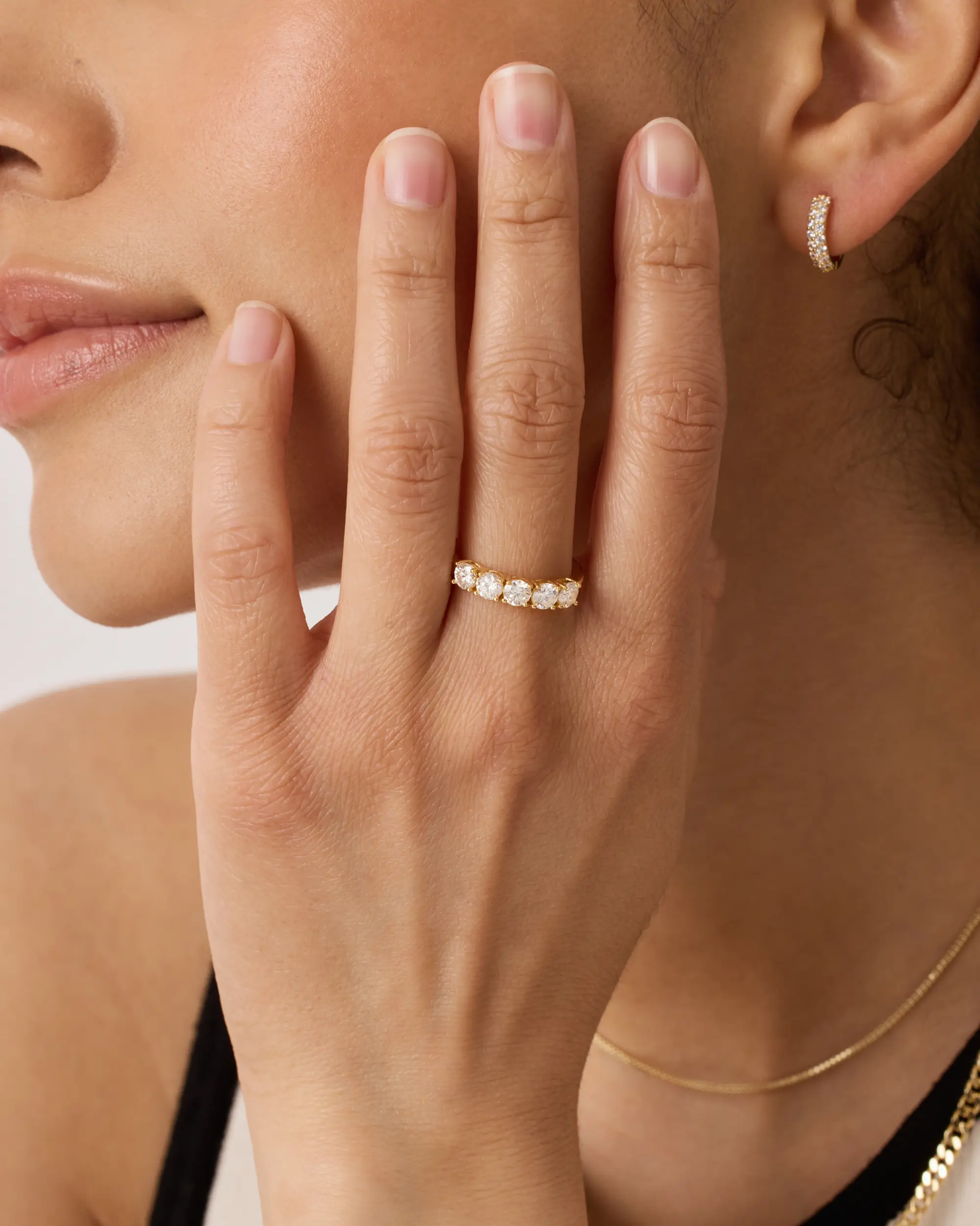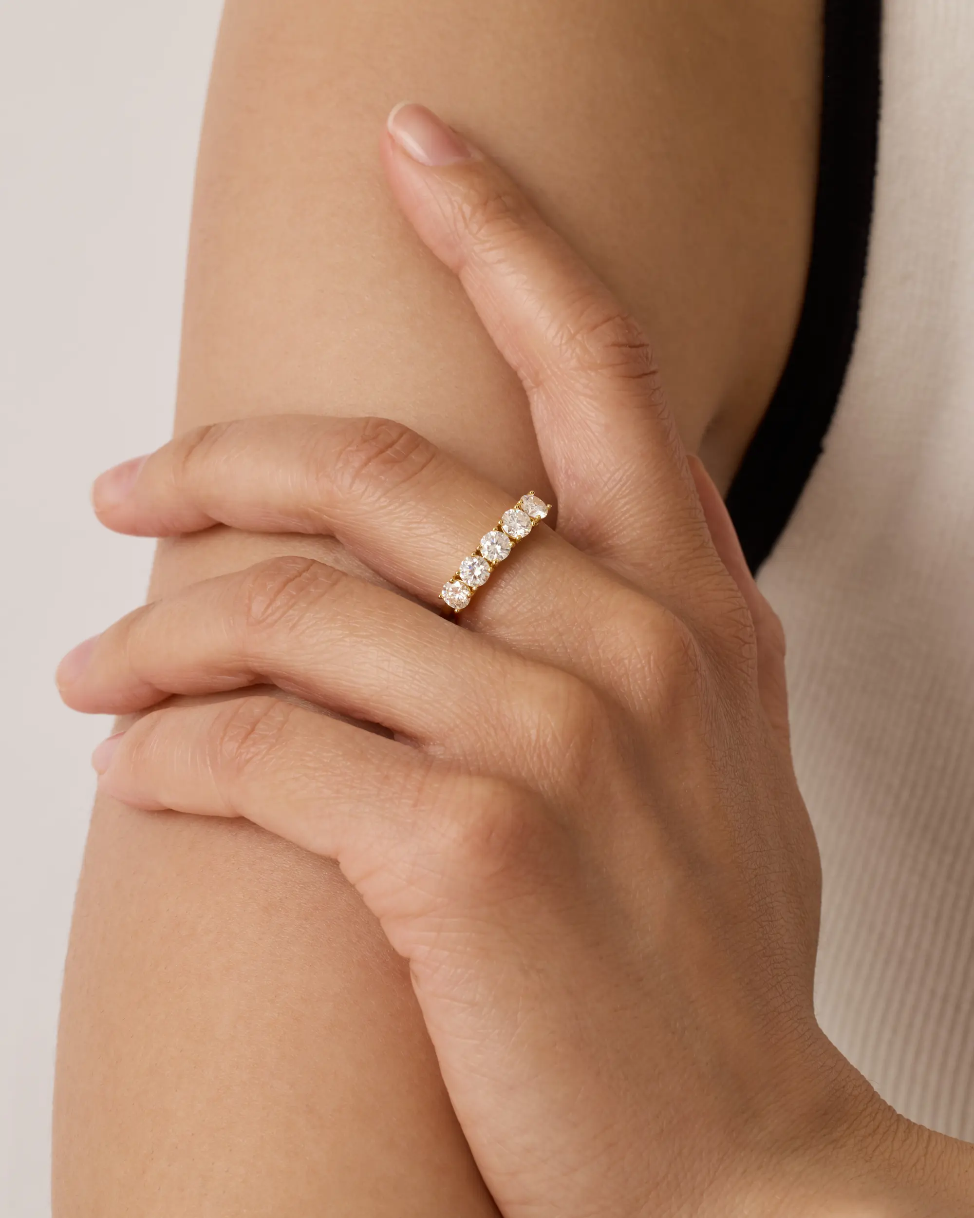 This band ring is so beautiful and shiny. I wear it with my engagement ring and it looks like the real diamond band ring. I highly recommend this ring.