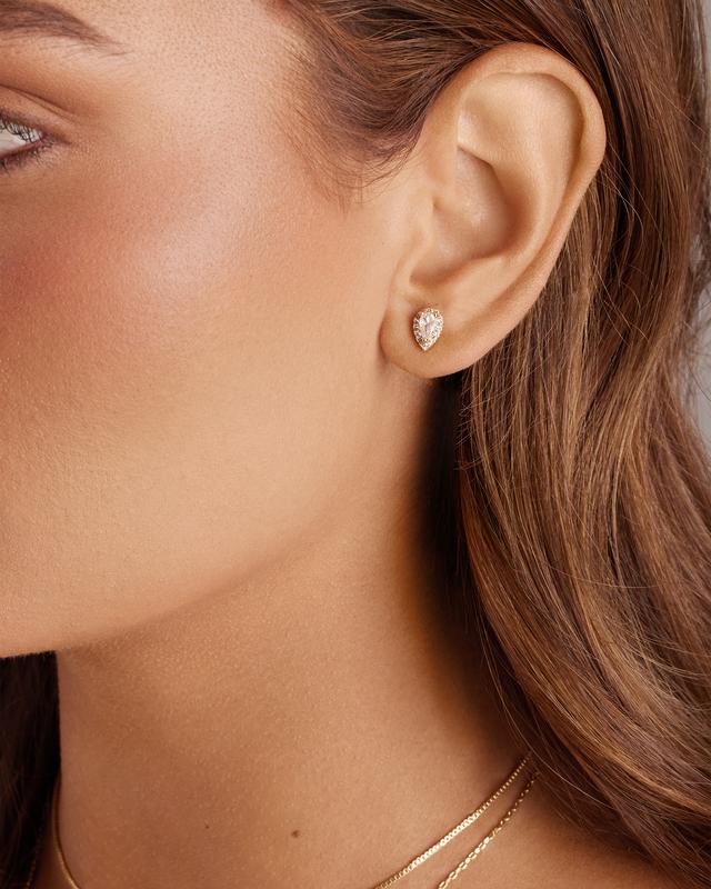 A timeless staple for any jewelry box—these faux diamond halo studs are beauty, made effortless.