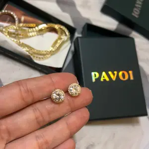 PAVOI 14K Gold Plated Premium Cubic Zirconia Halo Stud Earrings for Women