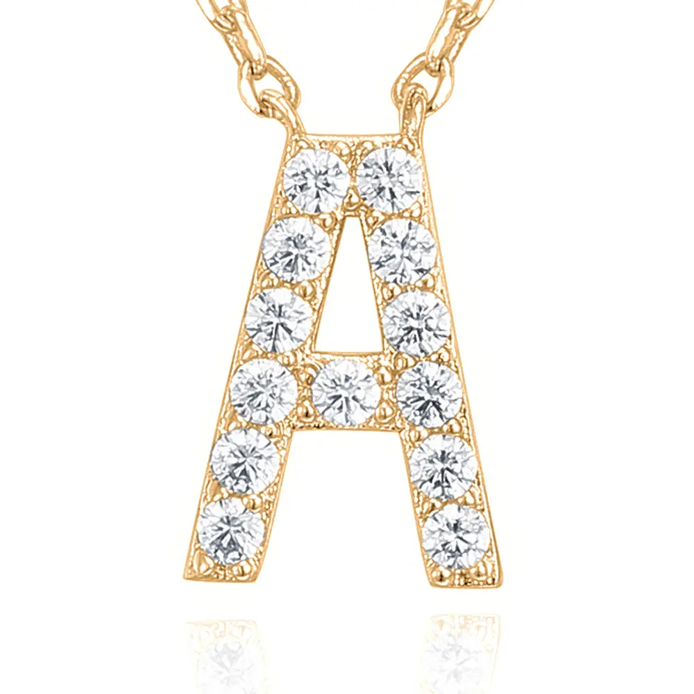 PAVOI Cubic Zirconia Initial Necklace - 14K Yellow Gold Plated Initial Letter Pendant Necklaces for Women - Gold Jewelry Gifts
