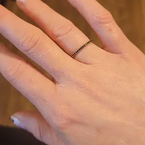 It’s a great ring quite thin, but looks great as a ring finger, thumb & pointing finger and layered I’m hoping to get other colors or maybe another black one not sure. I bought size 7, and it fits on all three of my fingers. Amazing.