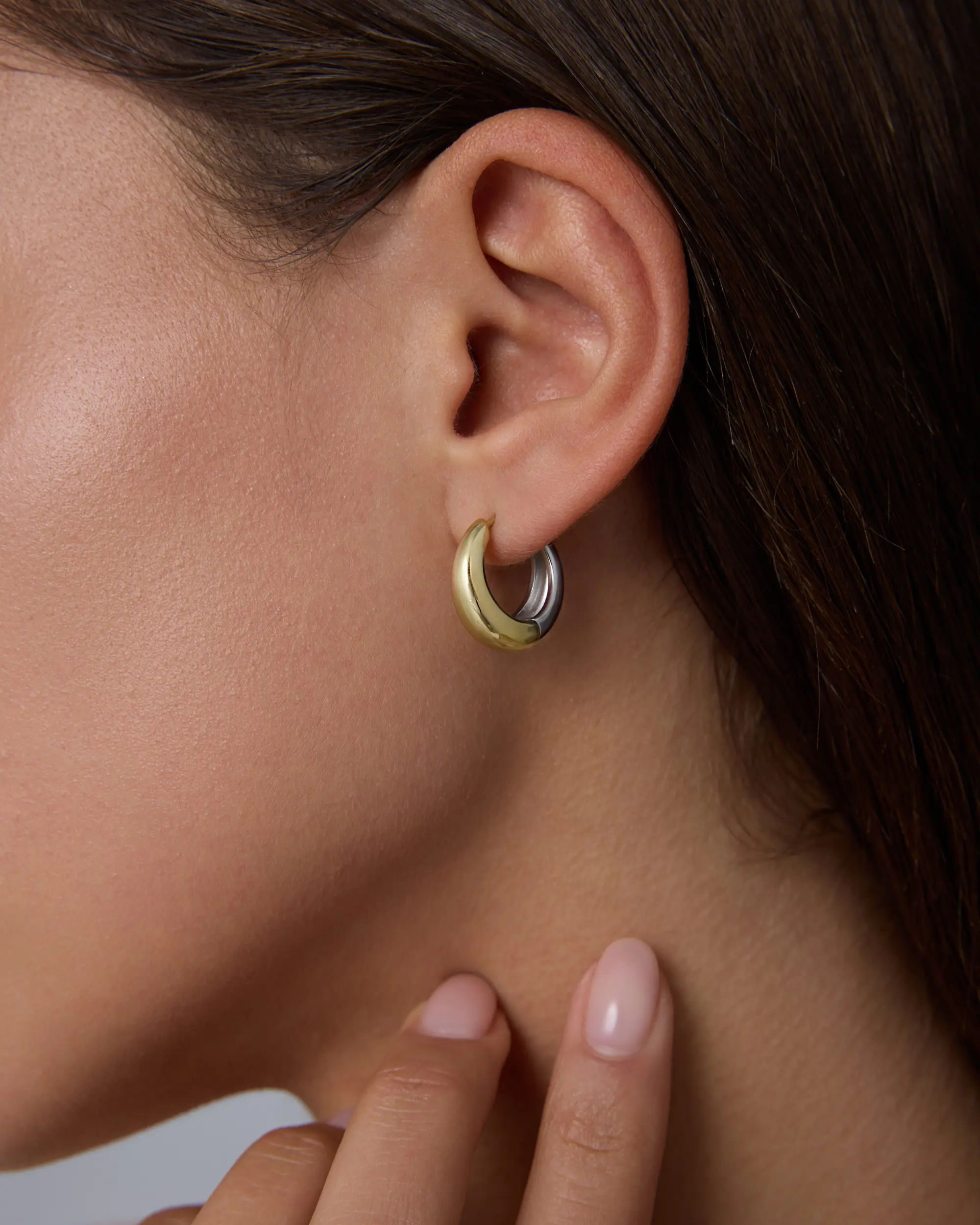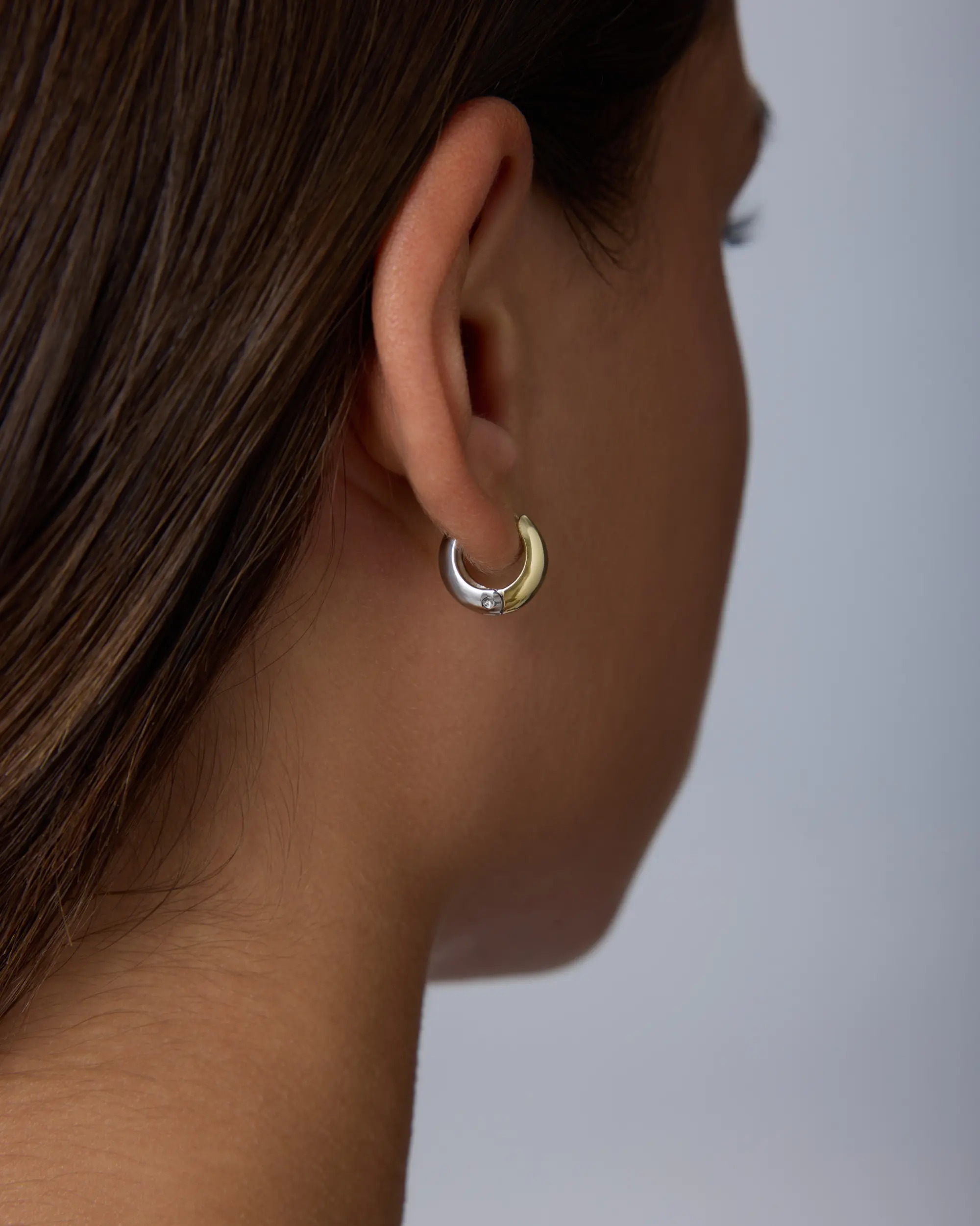 The perfect earring for multiple piercings. It is the perfect size. The two tone makes it versatile and they look so elegant and at the same time cool. Love them. Will be ordering the larger size to match.