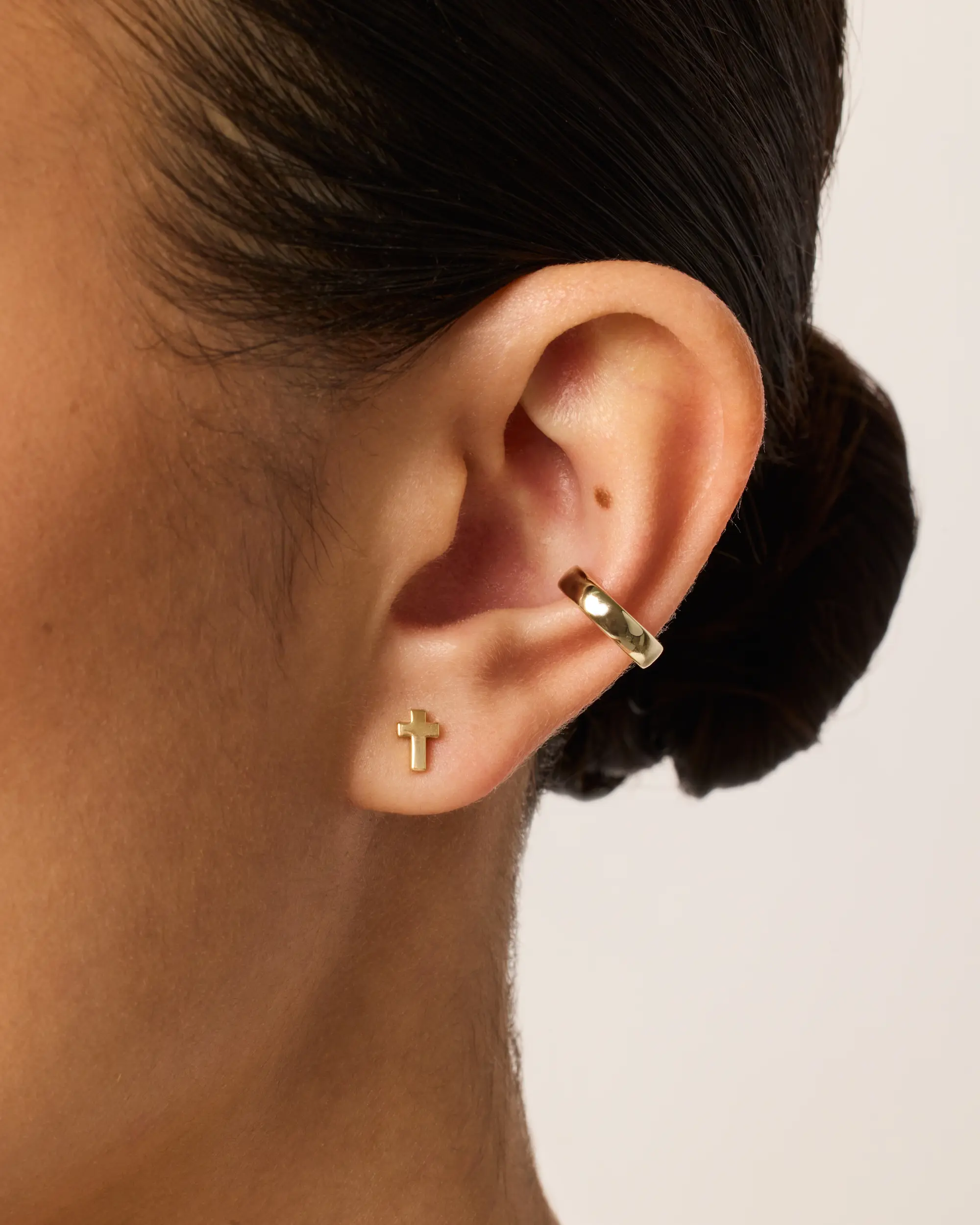 These earrings are a beautiful choice for those seeking faith-inspired jewelry. These small religious faith cubic zirconia cross studs are perfect for huggies earrings. The combination of 14K gold plating and sterling silver ensures a luxurious look. Ideal for women who appreciate religious symbolism in their accessories.