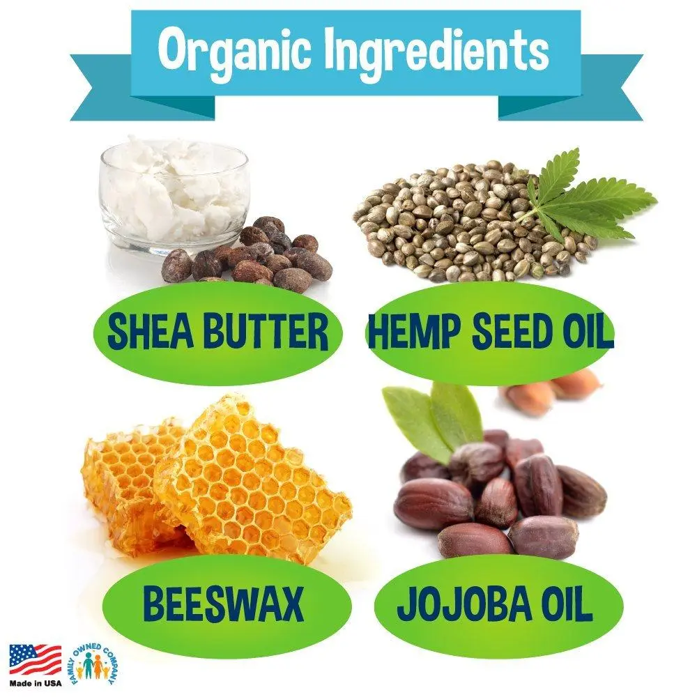 Organic Shea Butter, Organic Jojoba Oil, Organic Beeswax, Organic Hemp Seed Oil, Organic Calendula Extract, Organic Rosemary Extract