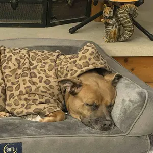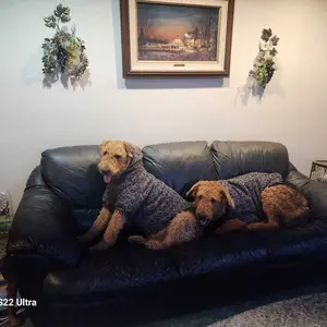 The 5XL fits my 90lb rescue pitty mix perfectly & he loves it! He looks so handsome and looks forward to putting it on! This is his 2nd comfrt hoodie (that actually fits him) & it’s the best for outside cold elements & inside snuggle comfort. It def helps with anxiety too! We love Comfrt so much!