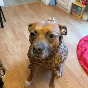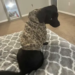 super cute and cozy fits well mostly except for the neck, it’s baggy everywhere else. The neck is really tight so i think i might have to cut it to fit my dog comfortably lol