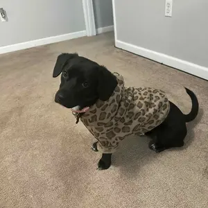 Cutest hoodie! Quality material and design. I ordered a large for my Frenchies who weigh 20 and 23 lbs, and an extra large for my 30 lb Frenchie who is longer/taller and stockier build.